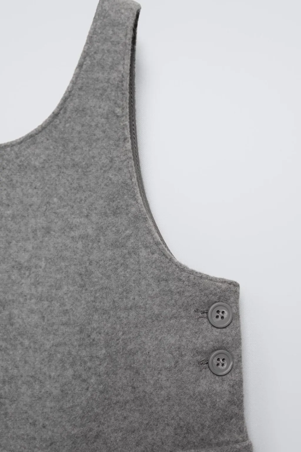 Pichi con cuello redondo y manga sisa. Cierre botonadura en laterales. Bolsillos de tipo plastrón en delantero.