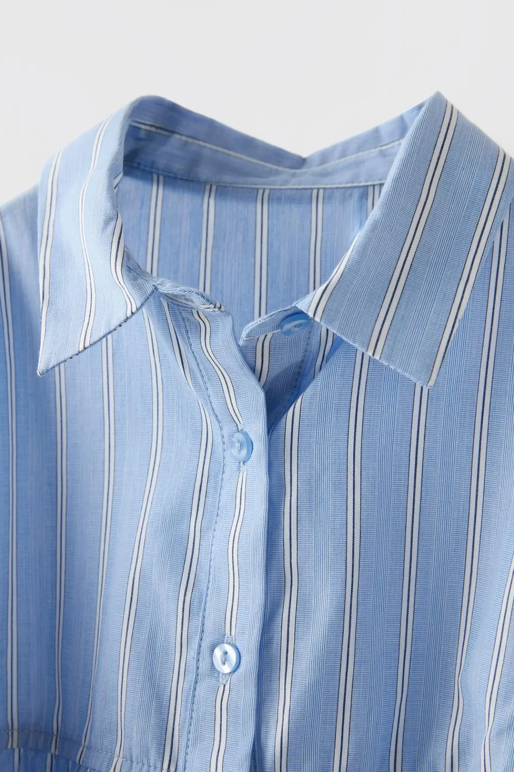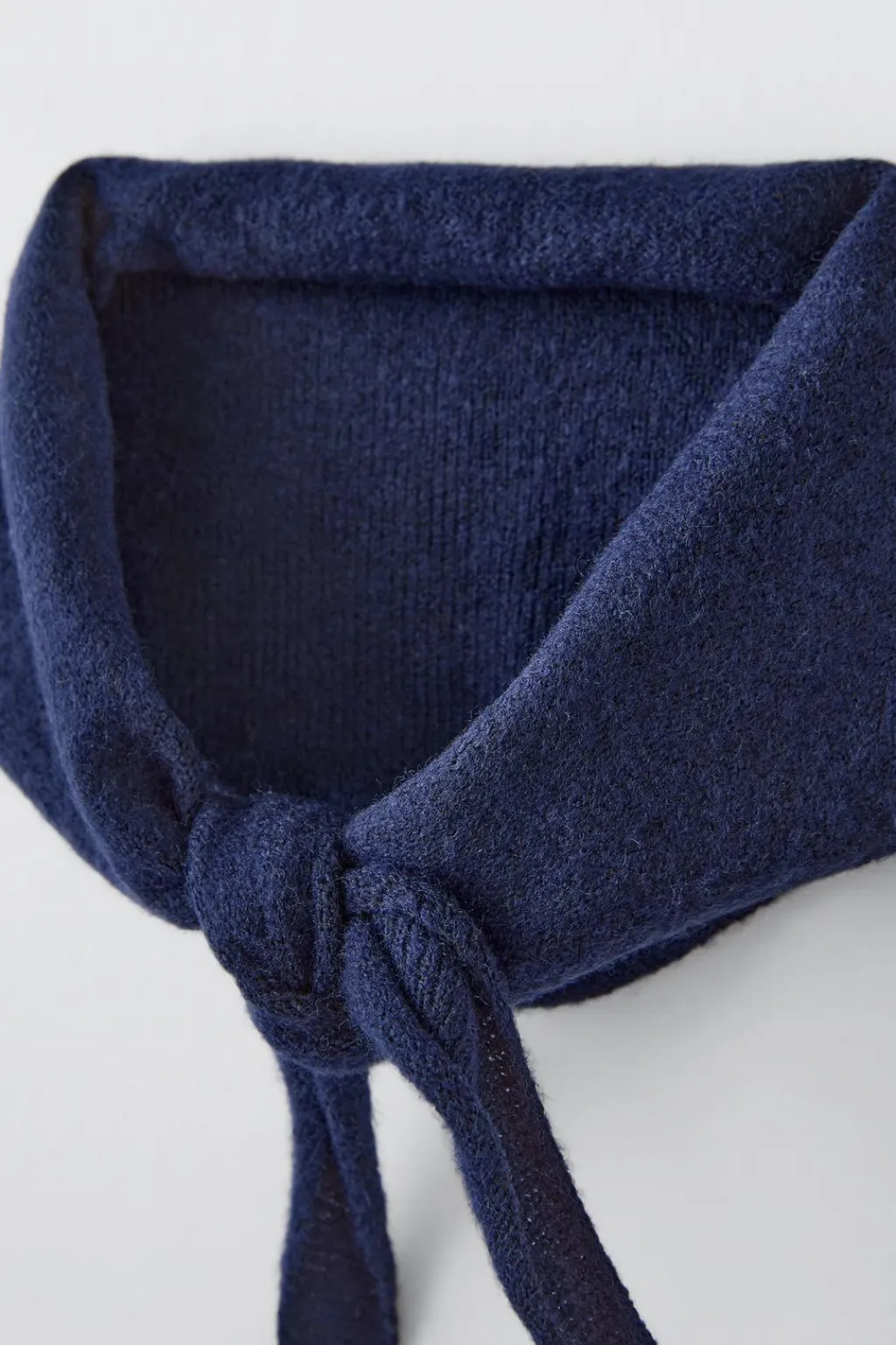 Vestido con cuello tipo camisero y manga larga. Cierre botonadura frontal. Detalle bandana de punto desmontable en hombros.