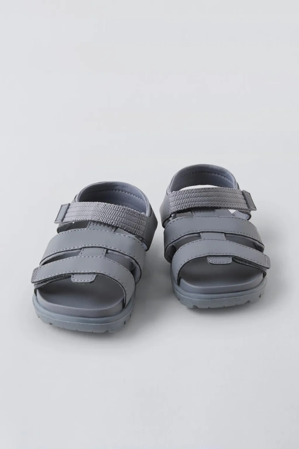 Sandalia tipo cangrejera engomada. Cierre mediante tira adherente en el empeine. Suela de goma dentada.