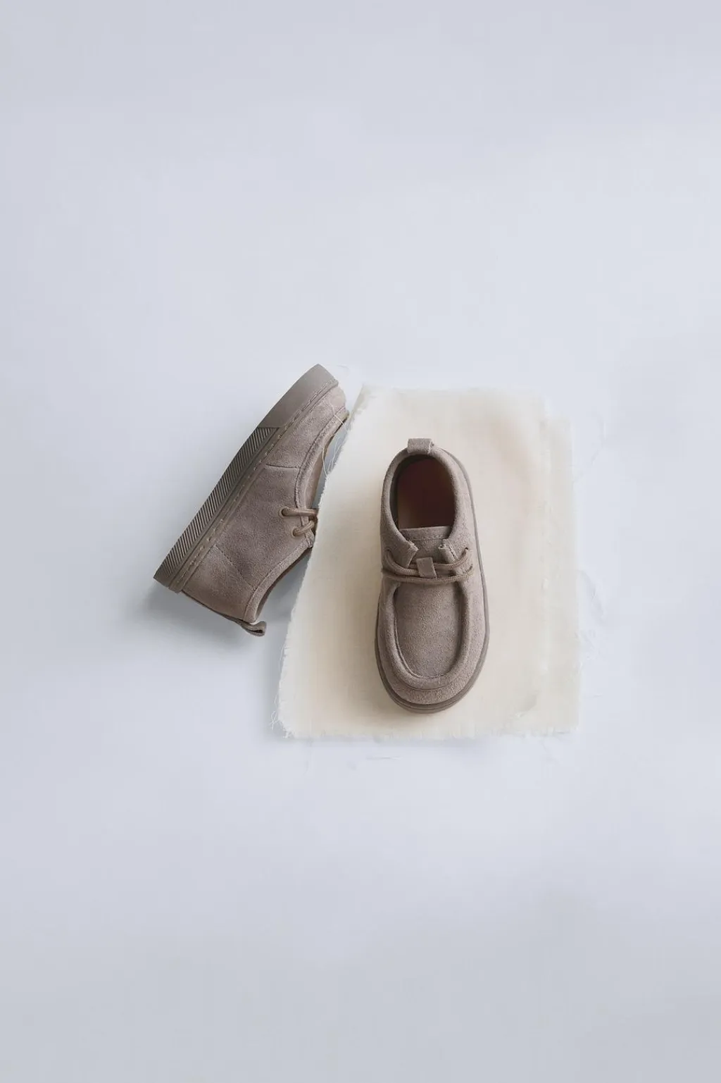 Zapato de piel 100% vacuno con acabado serraje. Cierre mediante cordonera con dos pasados. Tirador trasero para facilitar el calce. Plantilla flexible. Suela de goma.