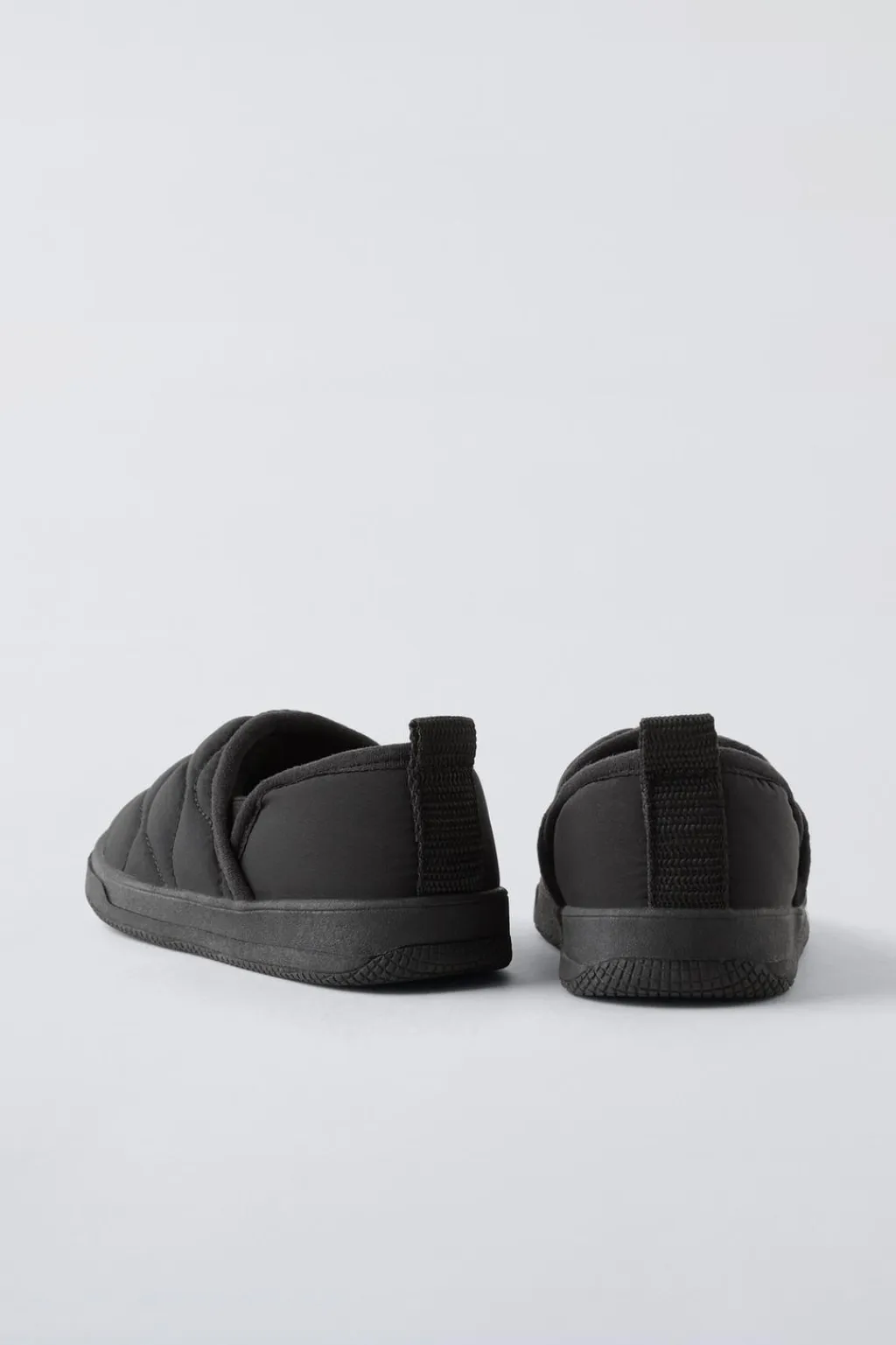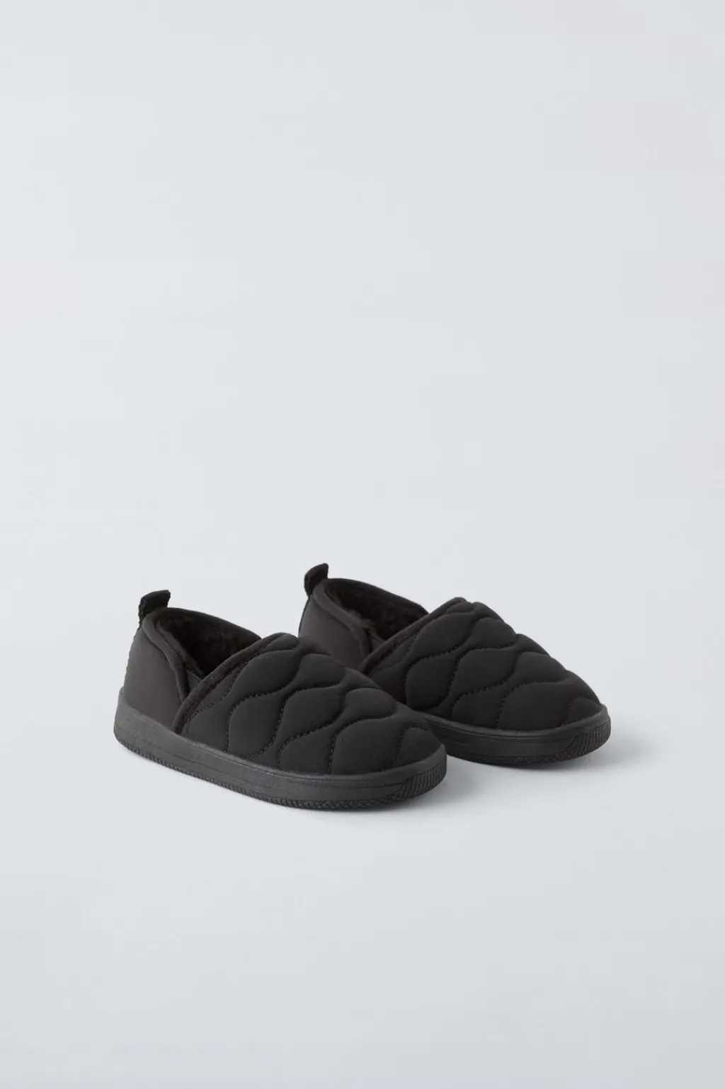 Zapatilla tipo bamba acolchada. Tirador trasero para facilitar el calce. Plantilla flexible. Suela de goma.