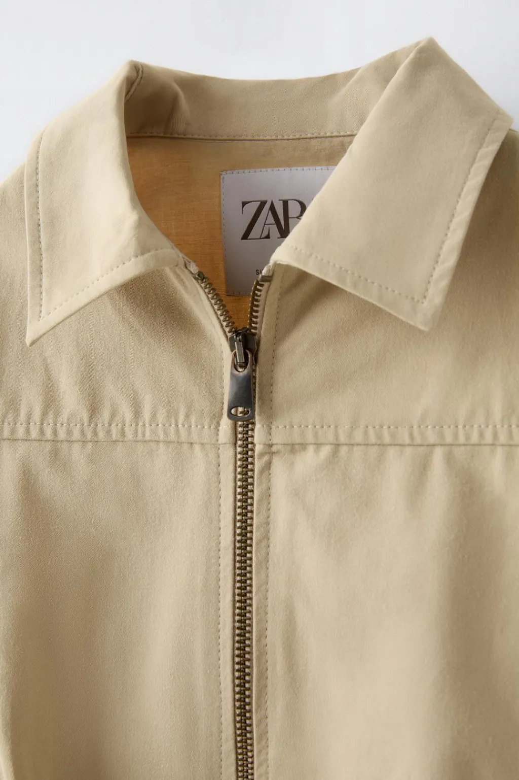 Cazadora con cuello tipo camisero y manga larga. Cierre cremallera frontal. Bolsillos laterales ocultos por costura. Detalle pinzas en delantero. Bajo acabado en goma rib.