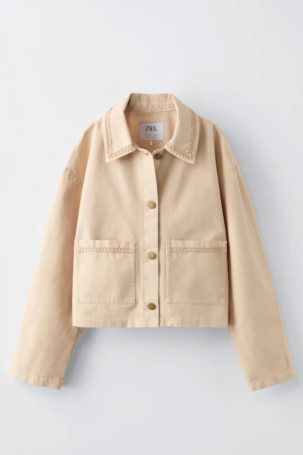Sobrecamisa con cuello camisero y manga larga. Cierre con botonadura frontal. Bolsillos tipo plastrón en delantero. Detalle bordados en color a tono.
