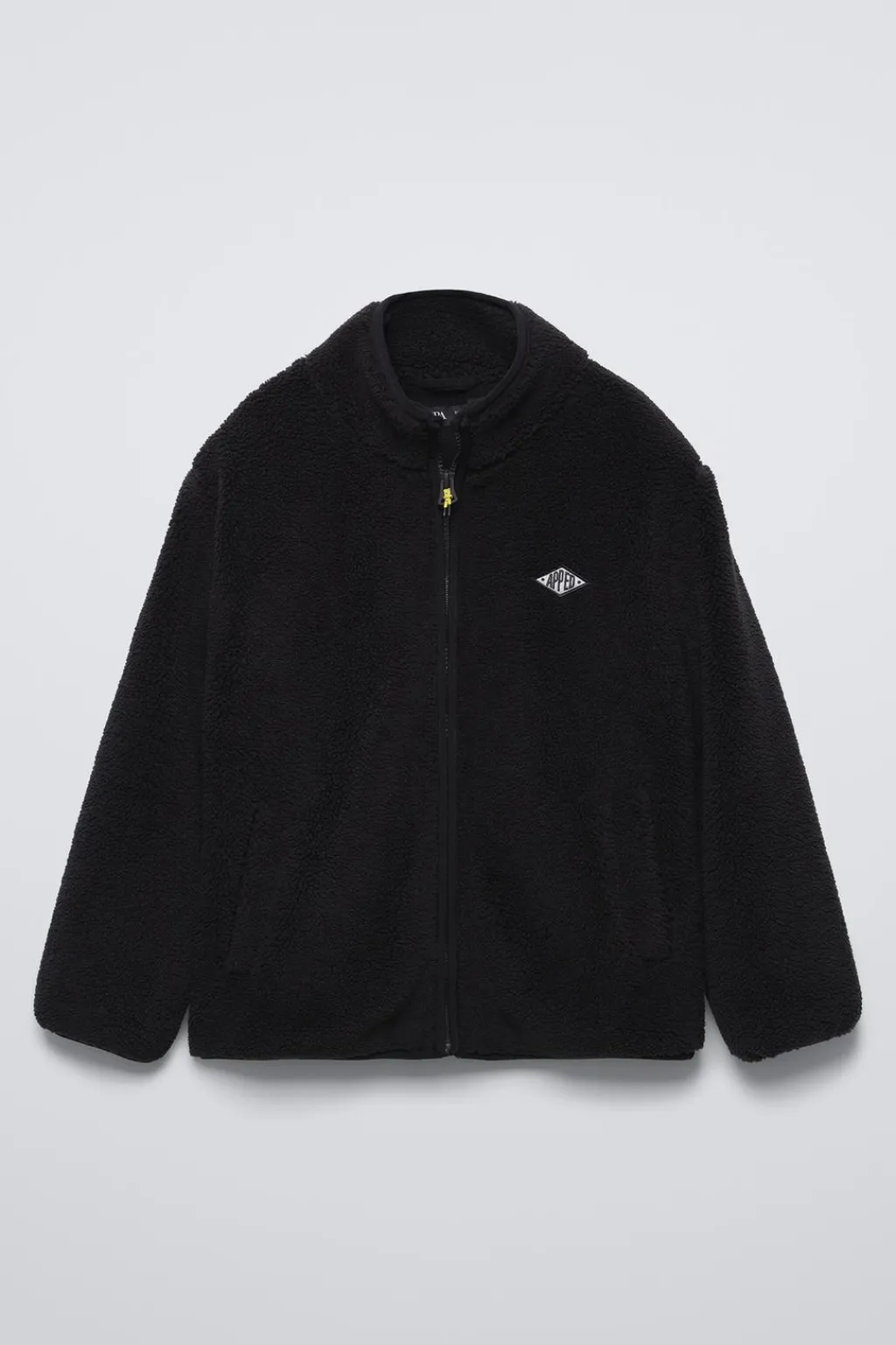 Cazadora con cuello subido y manga larga acabada en goma. Cierre cremallera frontal. Bolsillos delanteros. Forro interior en tejido polar. Detalle bordado en pechera.