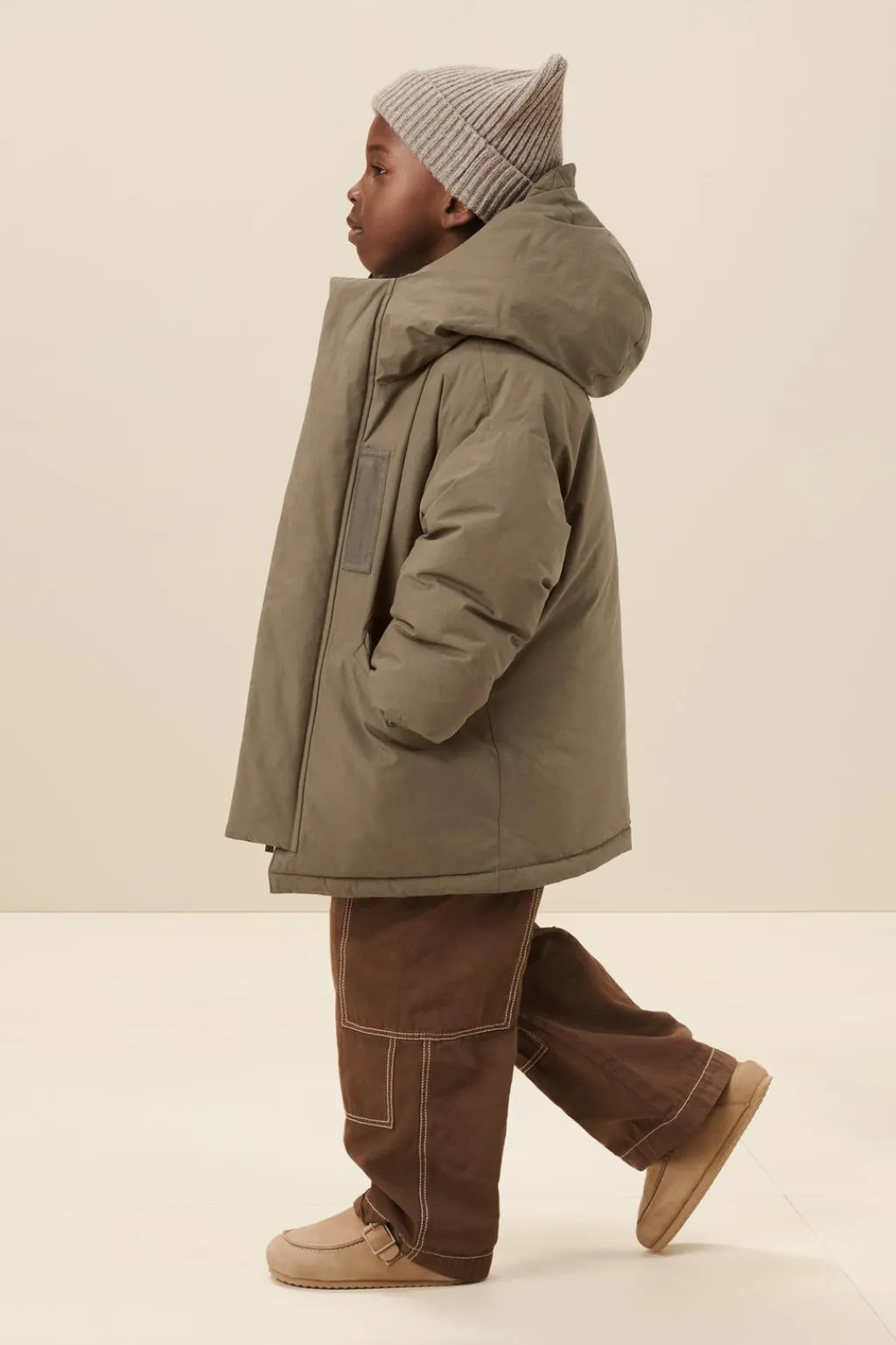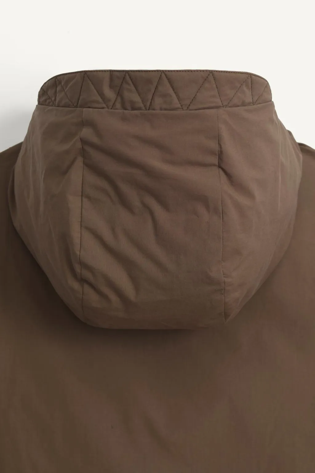 Parka acolchada con capucha, cuello subido y manga larga acabada en puño ajustable por cierre adhesivo. Cierre cremallera frontal termosellada de doble abertura oculta por solapa y cierre de botones tipo presión. Bolsillos delanteros con tapeta y cierre botón presión, en pechera con detalle vivo y cierre cremallera. Forro interior combinado a tono.