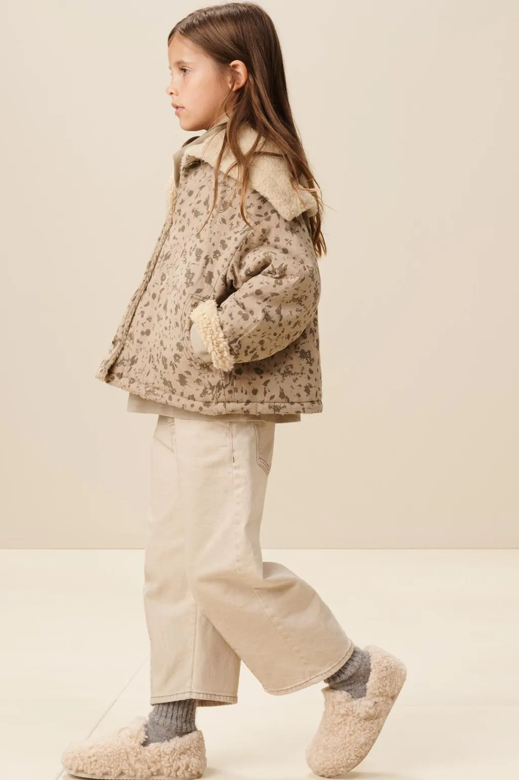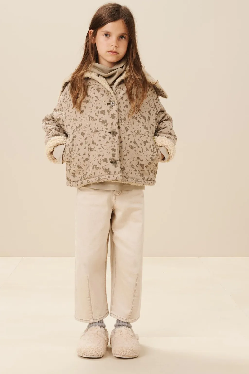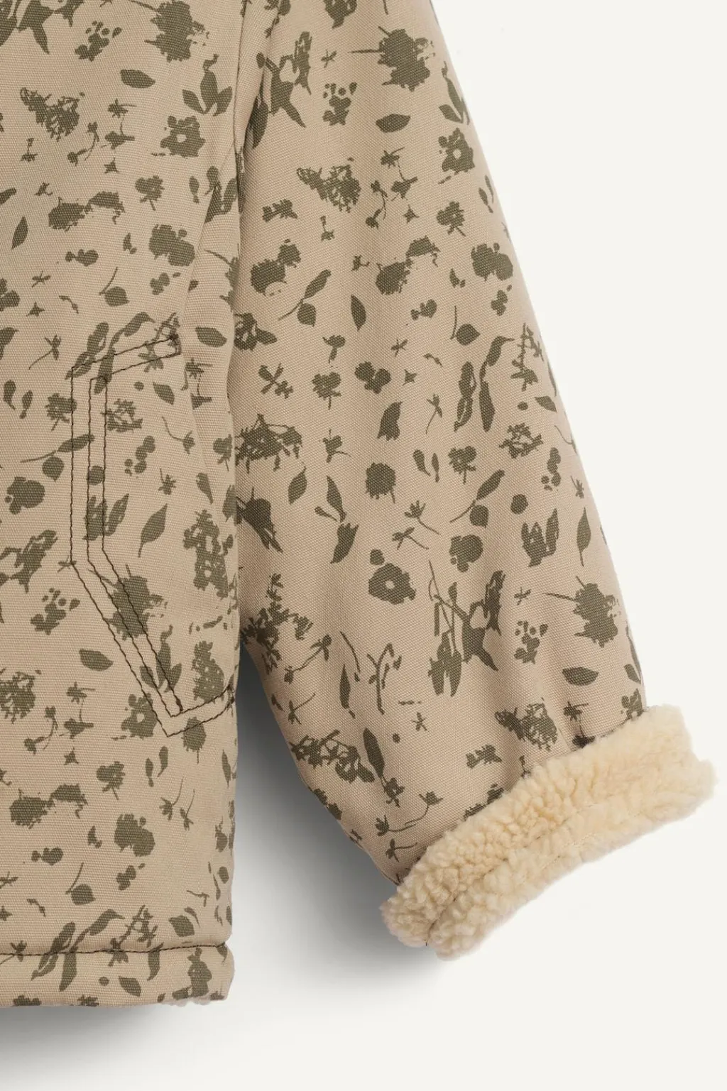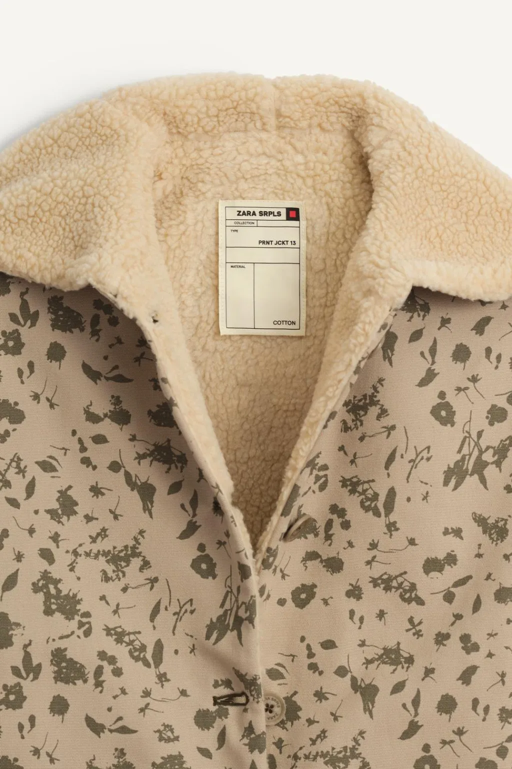 Cazadora estampada con cuello solapas y manga larga acabada en vuelta. Cierre de botonadura frontal. Bolsillos delanteros con forro interior en borreguillo y bolsillos en el interior. Forro interior en tejido de borreguillo.