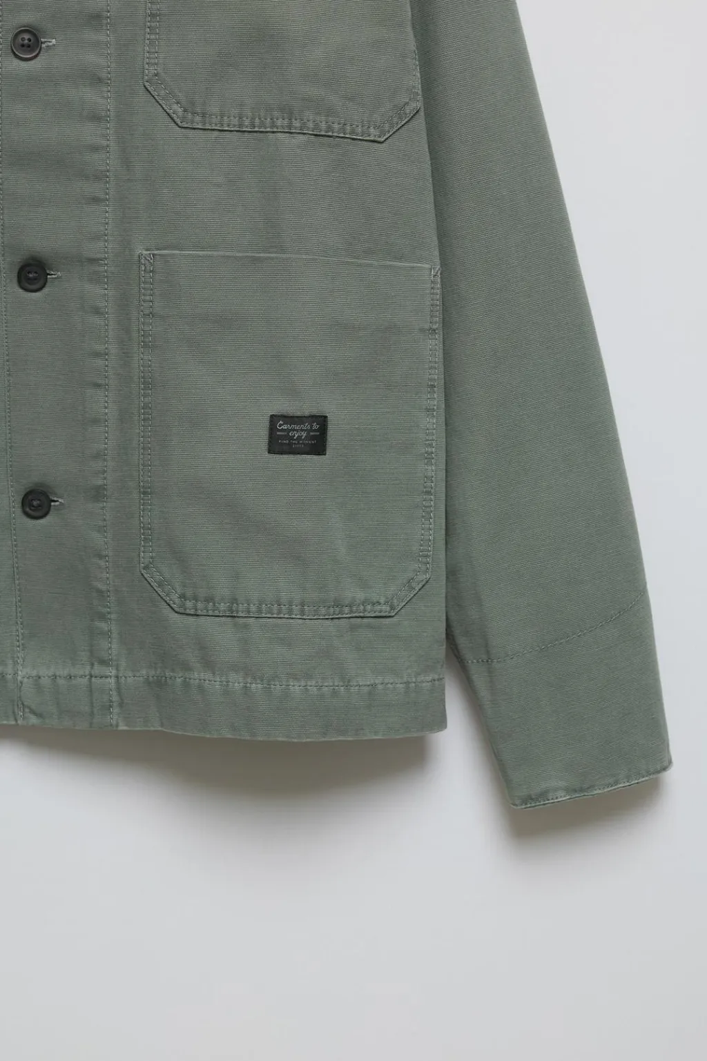 Sobrecamisa con cuello camisero a contraste y manga larga. Cierre botonadura frontal. Bolsillos de tipo plastrón en delantero con aplique etiqueta.