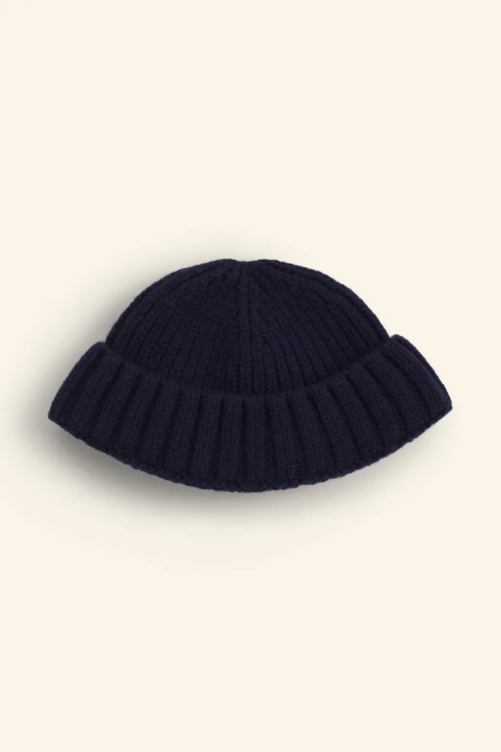 Gorro de lana tipo beanie acabado en vuelta.