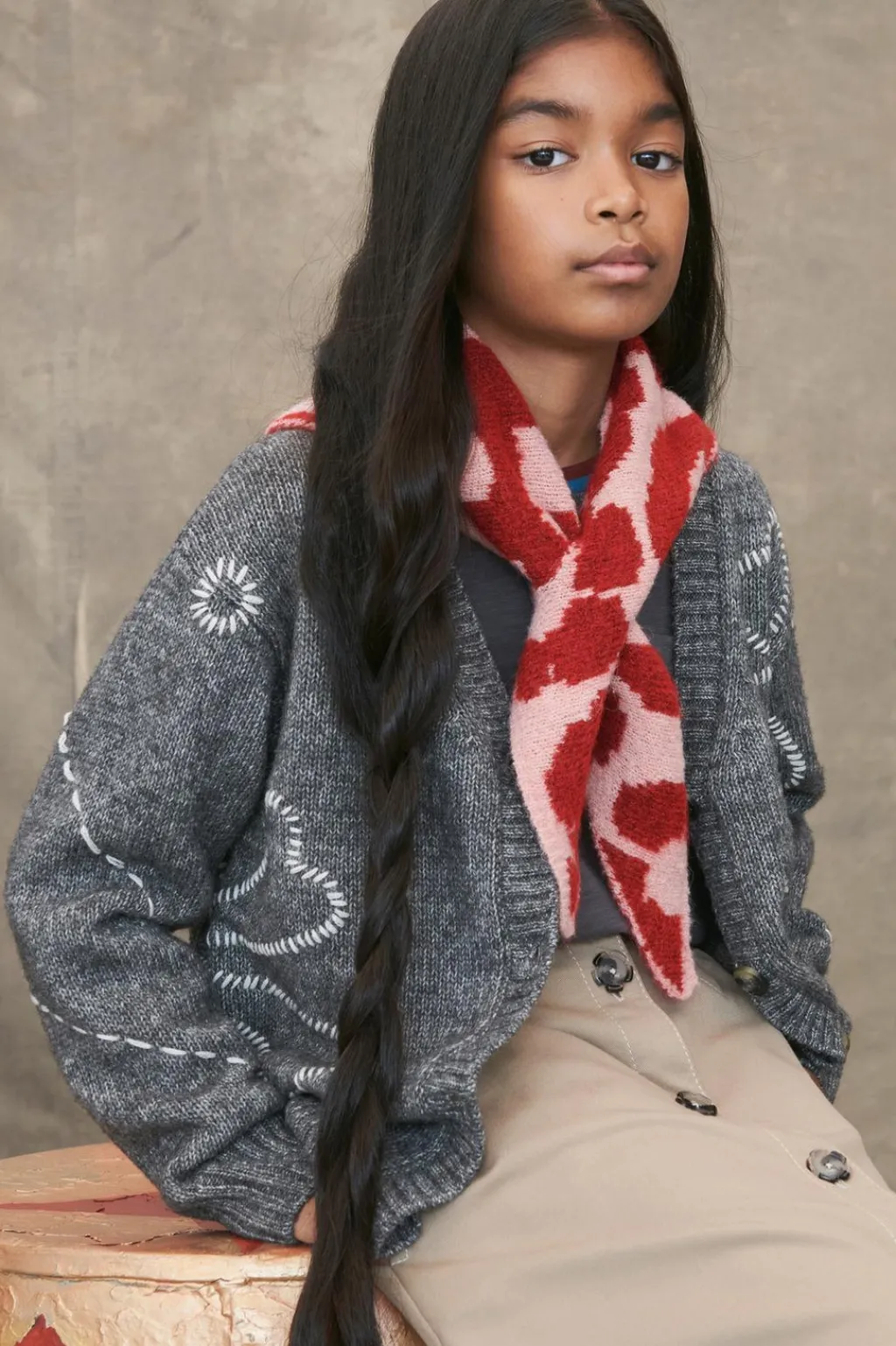 Bandana de punto con estampado de flores. Tejido con un 12% de lana.