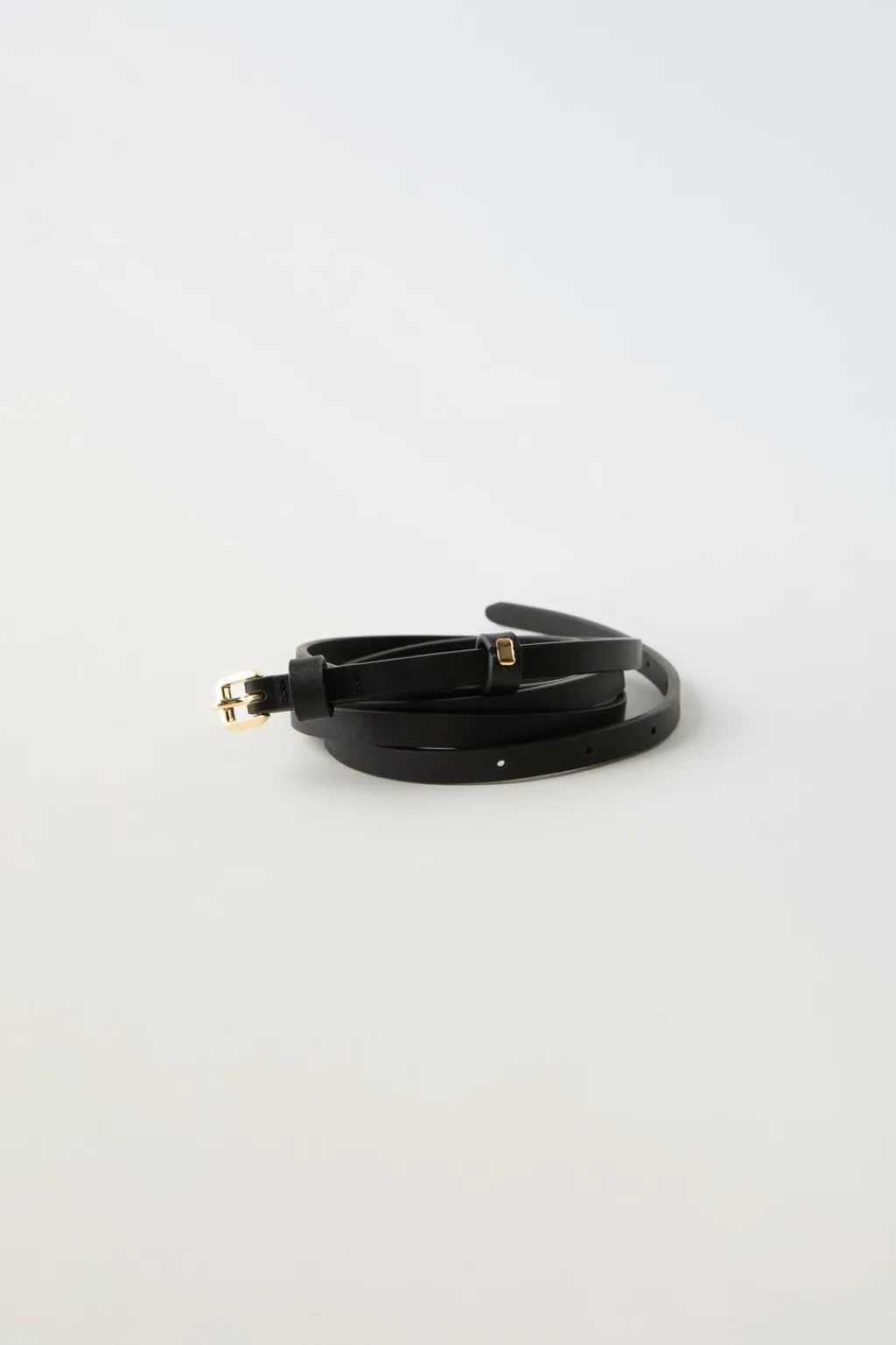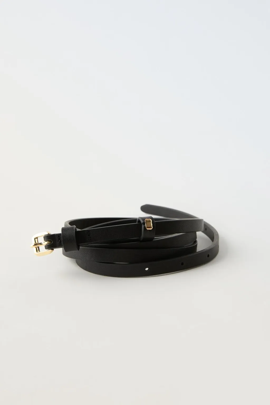 Cinturón fino de piel dos vueltas. Cierre con hebilla y pasador.