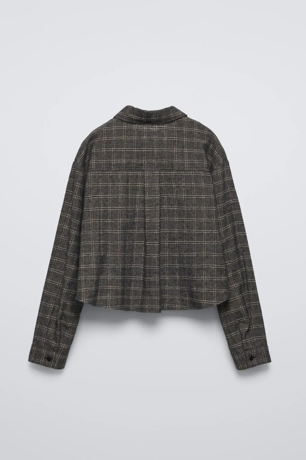 Camisa con cuello camisero y manga larga con cierre botón. Cierre botonadura frontal oculta por solapa. Bolsillo tipo plastrón en pechera. Estampado cuadros.