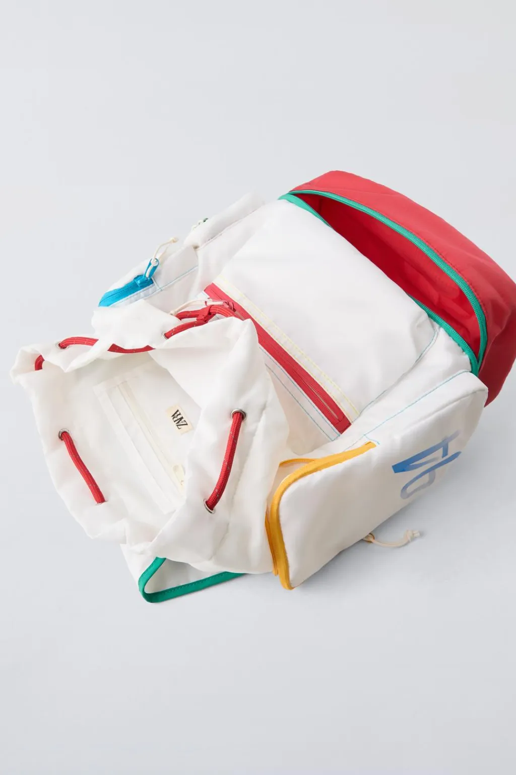 Mochila multicolor tipo explorer. Compartimento principal con cierre mediante solapa con tirado deportivo y cordón ajustable fruncido. Cuenta con bolsillos laterales y dos bolsillos frontales con cierre mediante cremallera. En el inferior de la mochila cuenta con un compartimento para calzado con cierre mediante cremallera.En su interior, cuenta con un bolsillo sin cierre. Asa de mano y dos asas de hombro ajustables.
