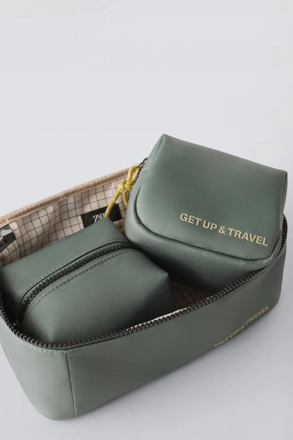 Pack de neceser de viaje 3 x1. Neceser principal con cierre mediante cremallera. Asa de mano. Cuenta con dos neceseres pequeños con cierre mediante cremallera.