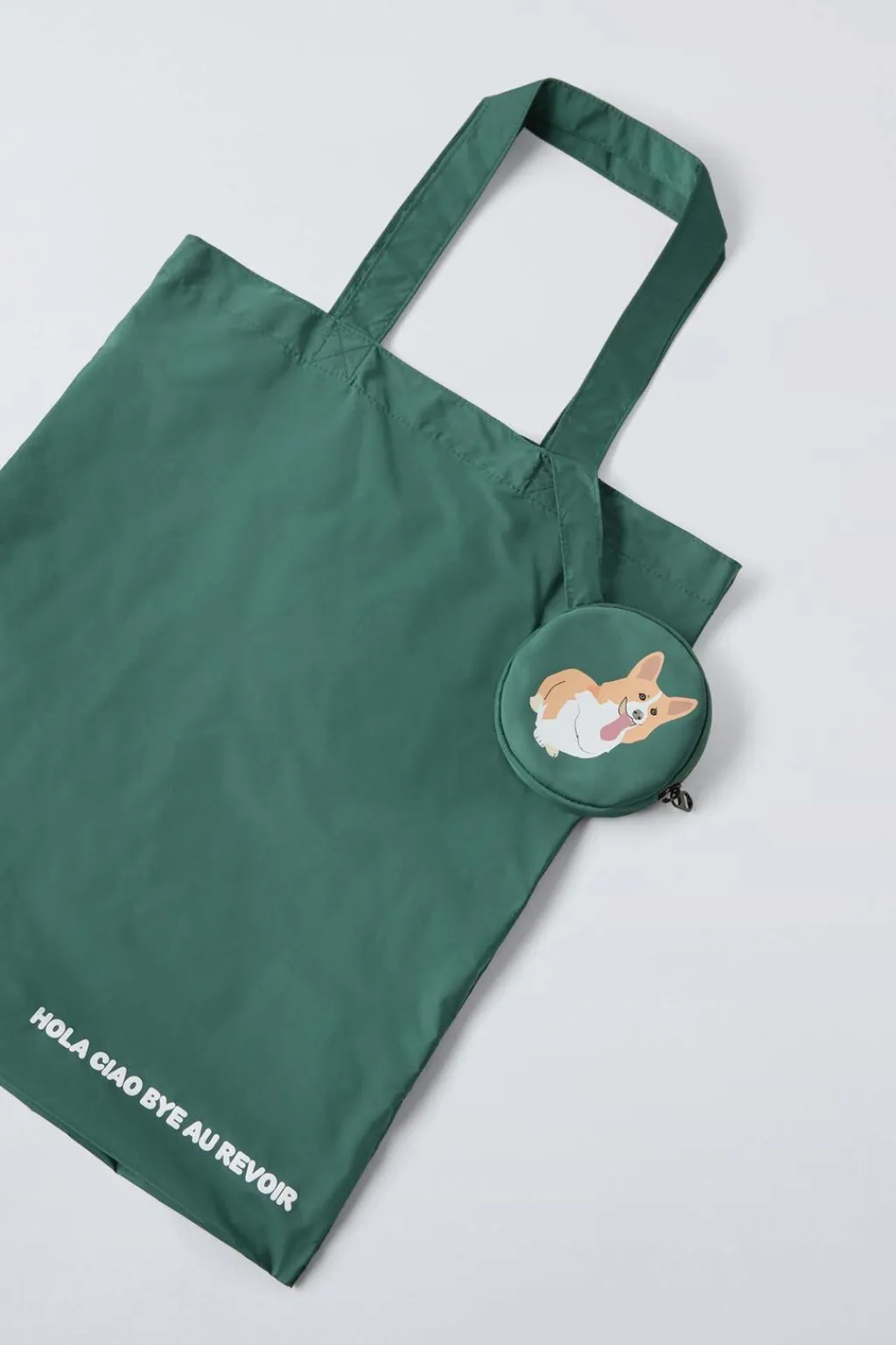 Bolso tipo shopper plegable convertible en charms – monedero con imagen perrito. El charm cuenta con un compartimento con cierre mediante cremallera. El shopper cuenta con dos asas y sin cierre. tiene un stopper deportivo.