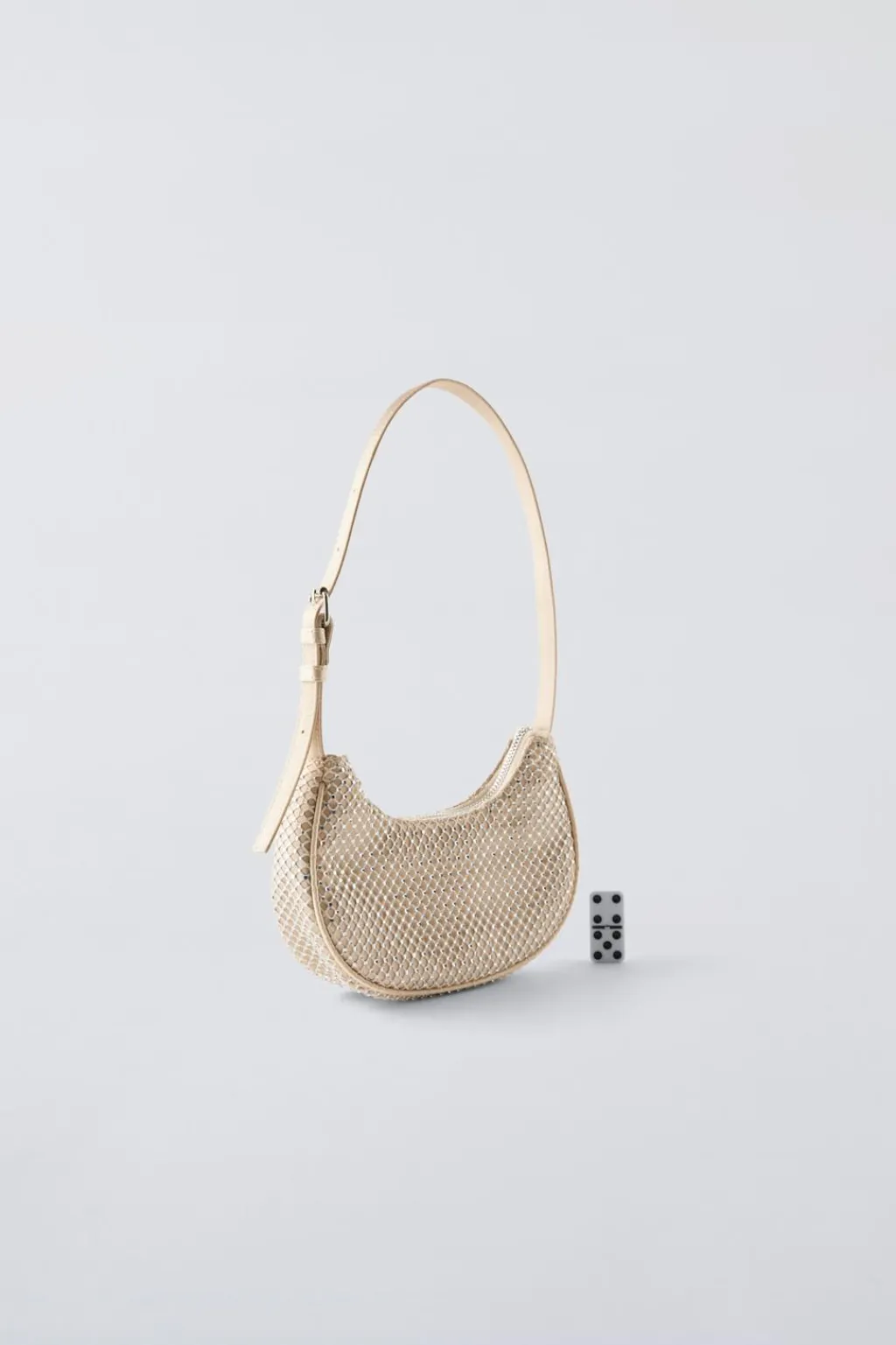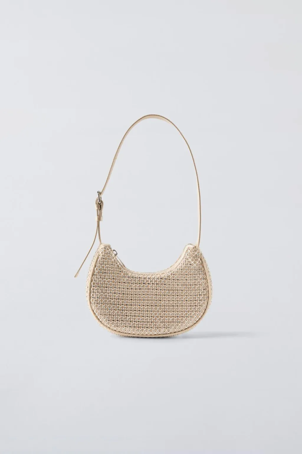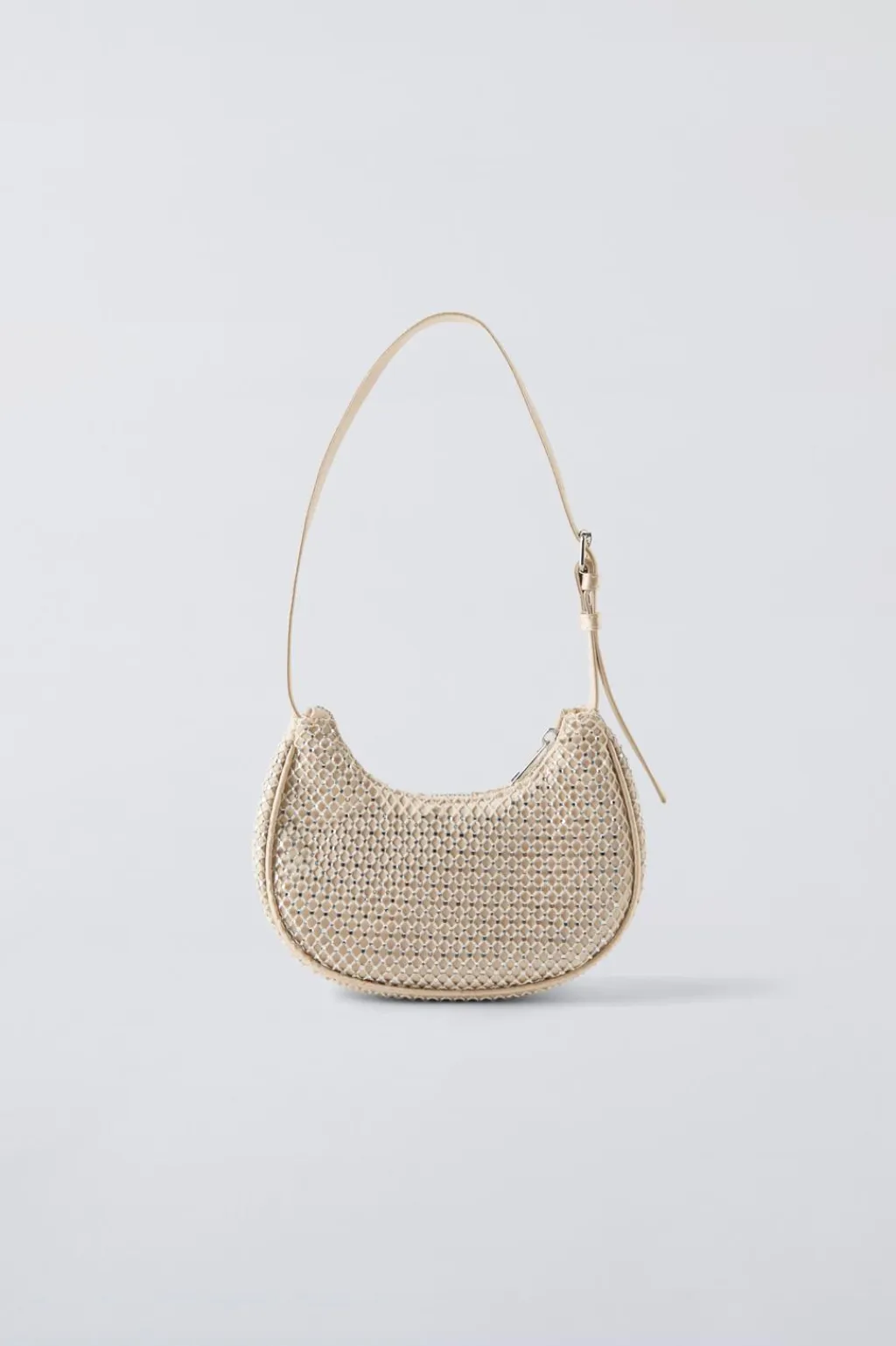 Bolso de hombro con strass. Cierre mediante cremallera. Asa de hombro ajustable.