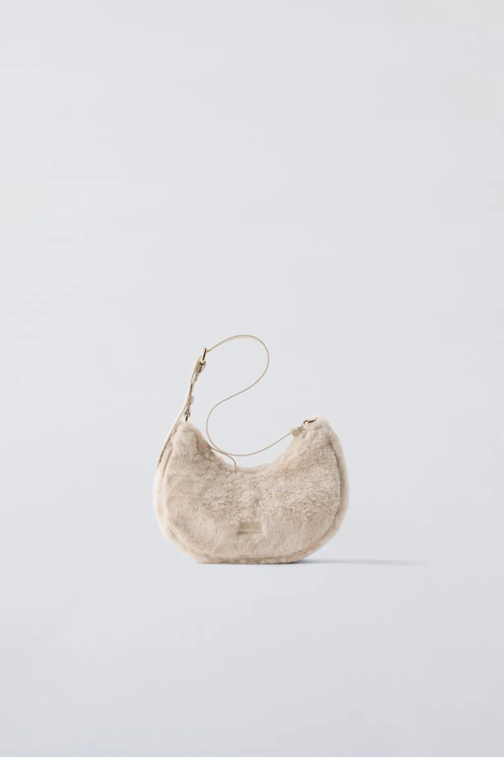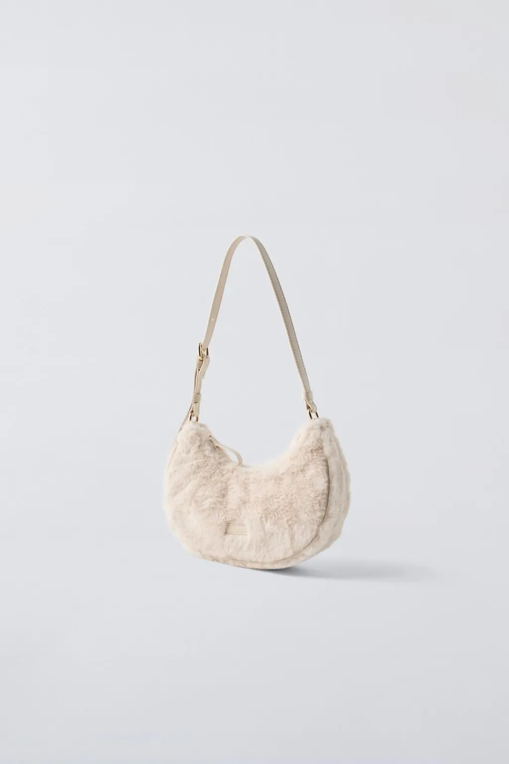 Bolso de hombro con pelo. Cierre mediante cremallera. Asa de hombro ajustable.