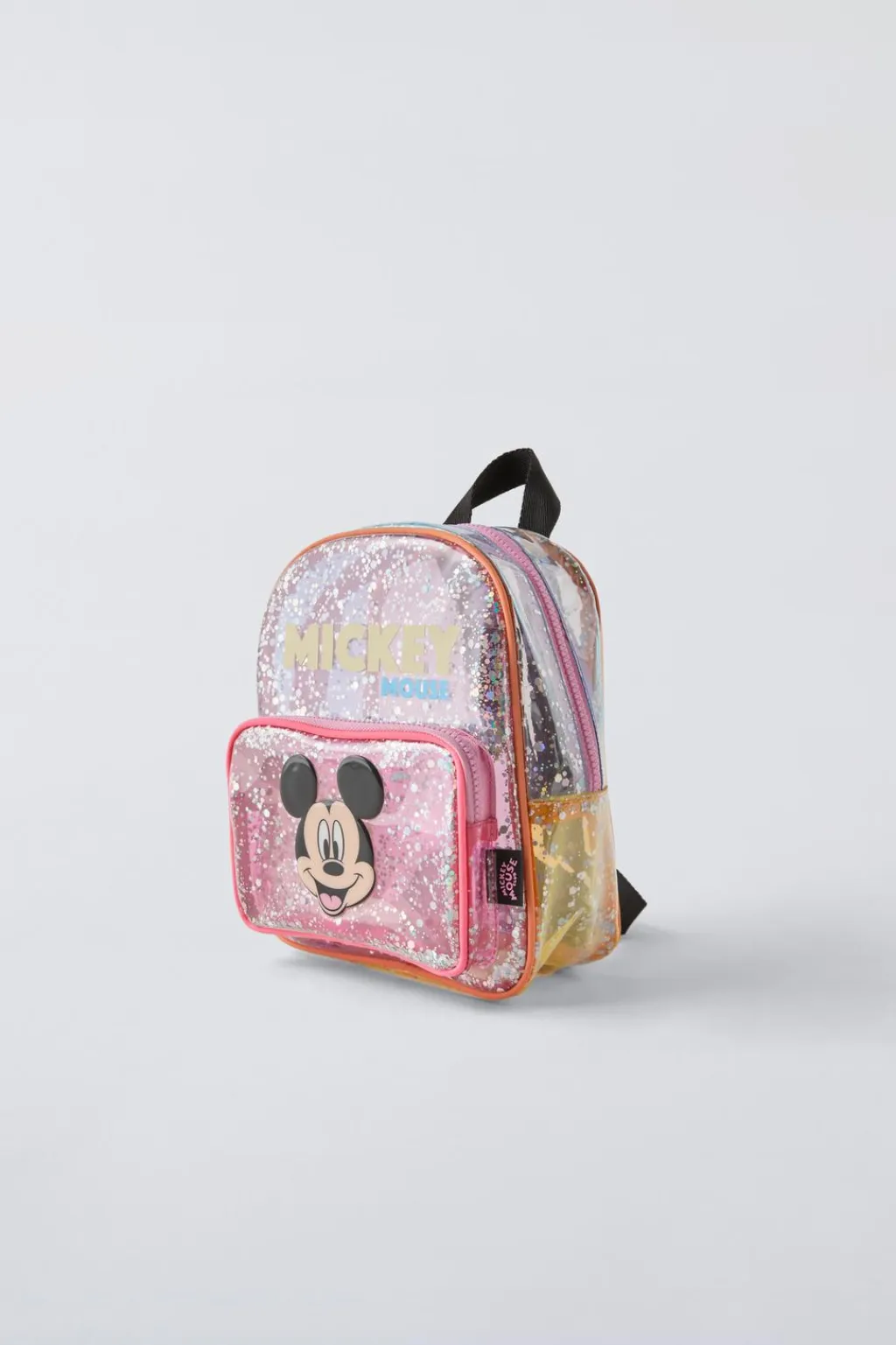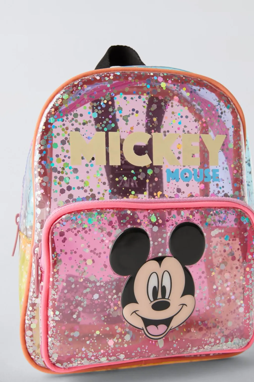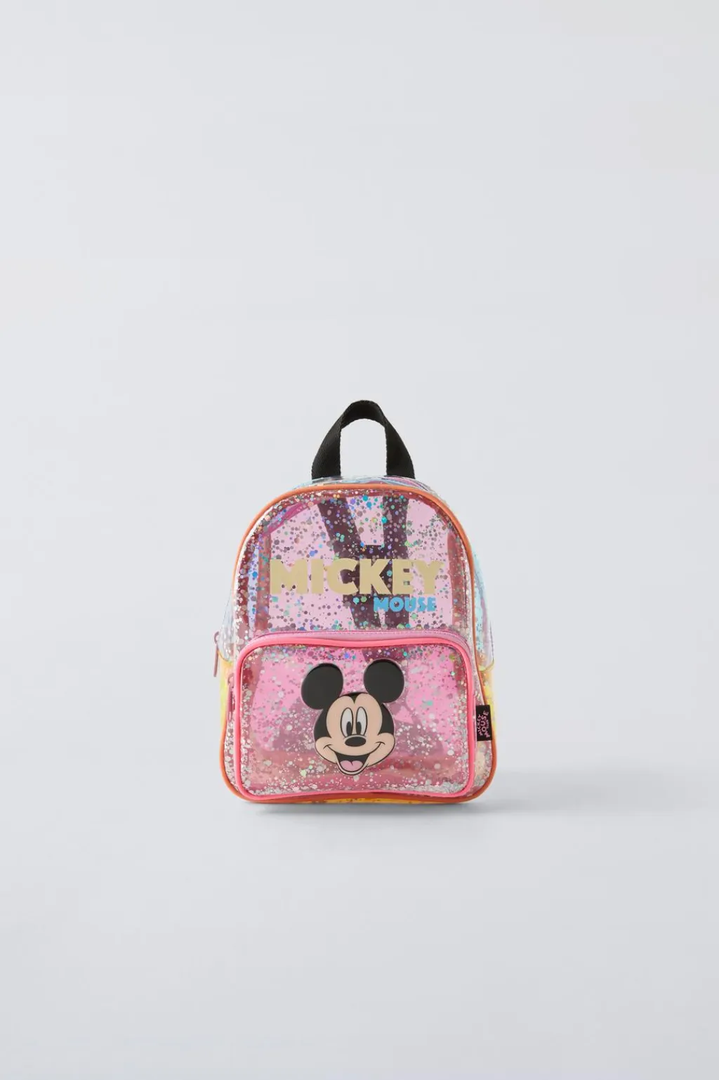 Mini mochila detalles vinilo MICKEY MOUSE © DISNEY. Compartimento principal con cierre mediante cremallera. Cuenta con un bolsillo frontal con cierre mediante cremallera. Asa de mano y doble asa de hombro ajustable.