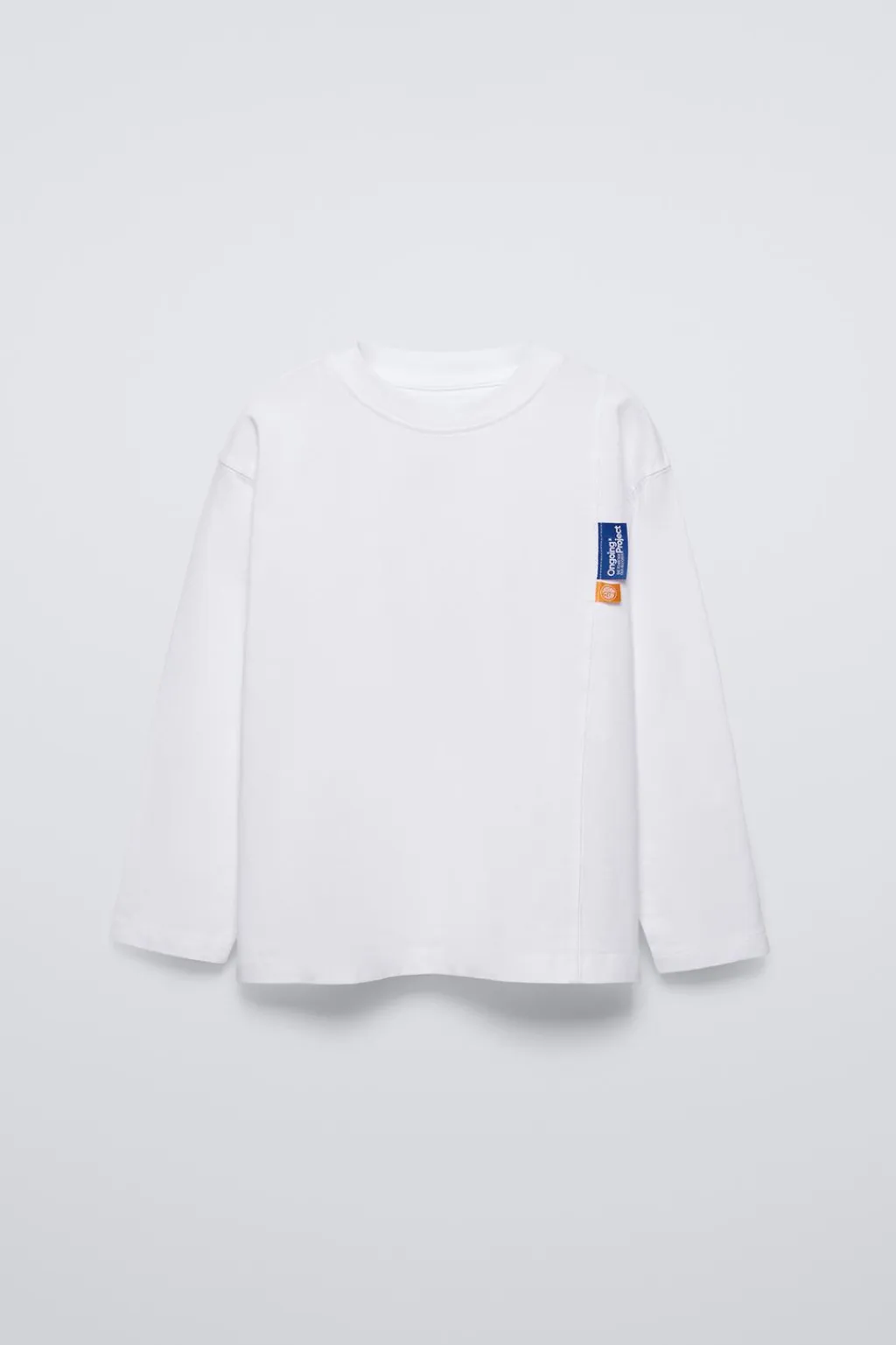 Camiseta con cuello redondo y manga larga. Aplique etiqueta en pechera y estampado en espalda.