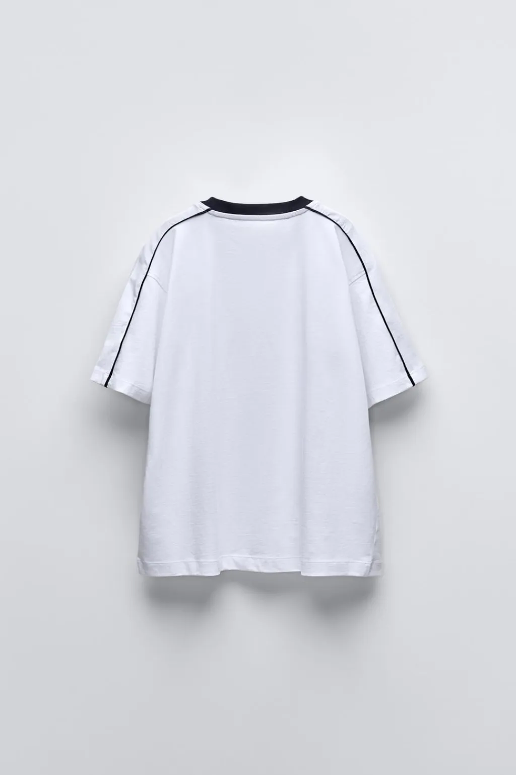 Camiseta con cuello redondo y manga corta, detalle a contraste en hombros. Bordado texto en pechera.