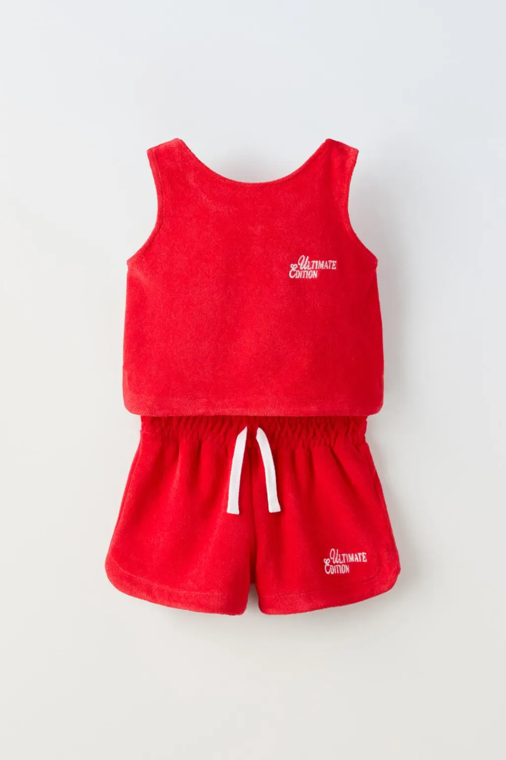 Conjunto dos piezas. Camiseta con cuello redondo y manga sisa. Detalle texto bordado en pechera. Bermuda con cinturilla elástica y aplique cordones frontal.