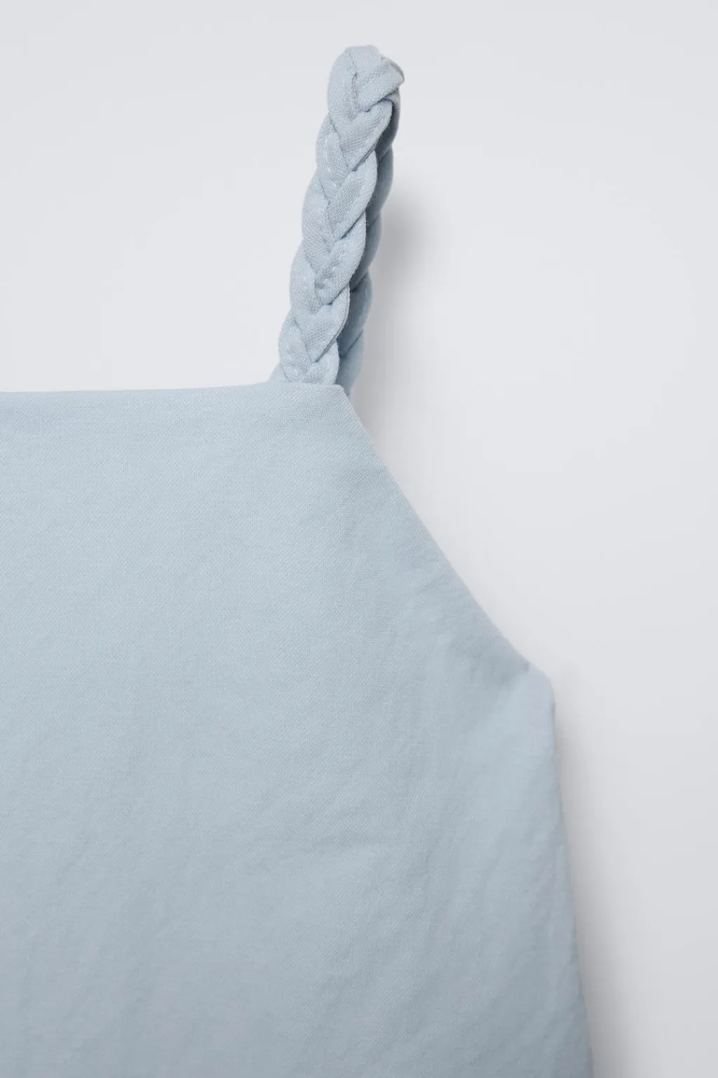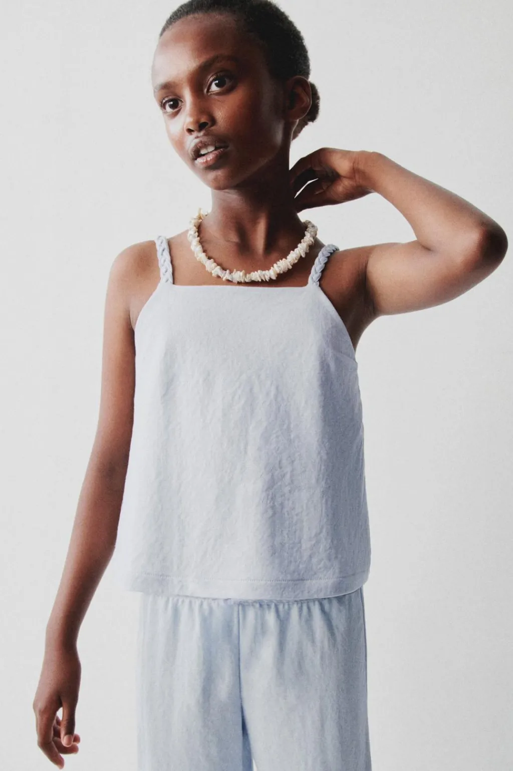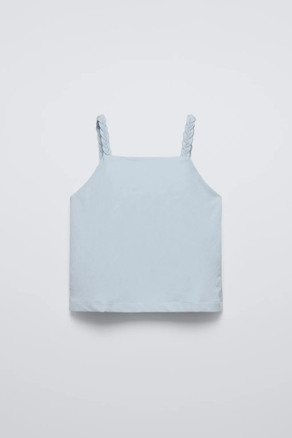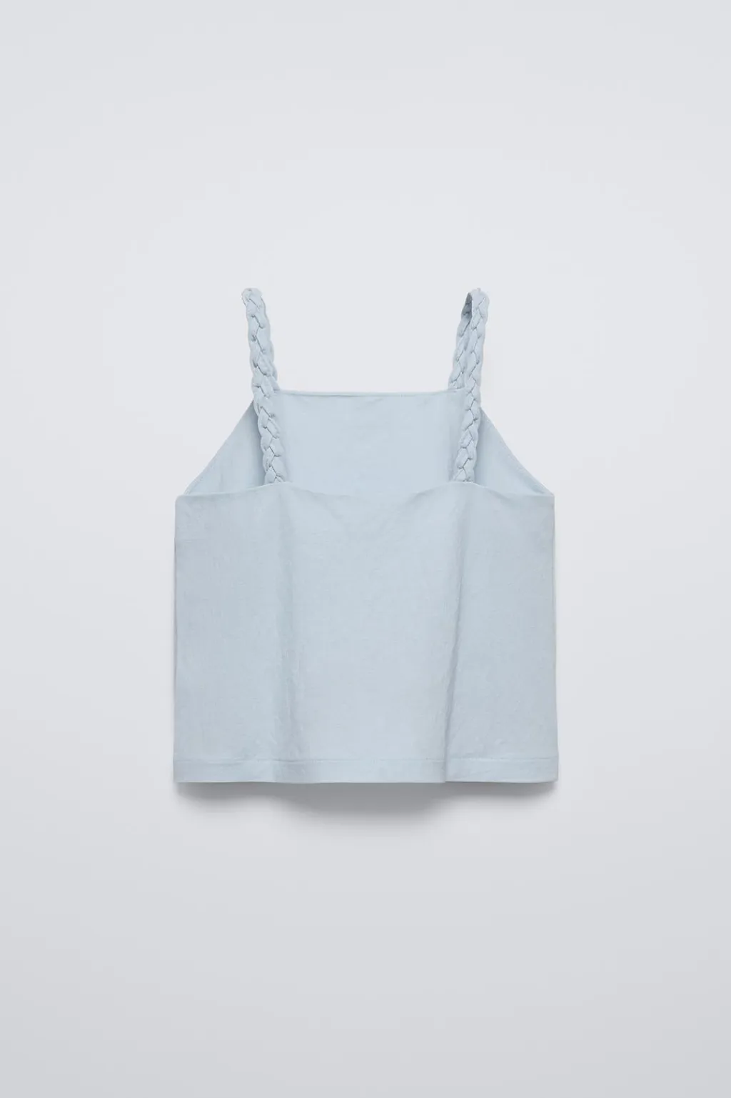 Camiseta con cuello recto y tirantes detalle trenzado.