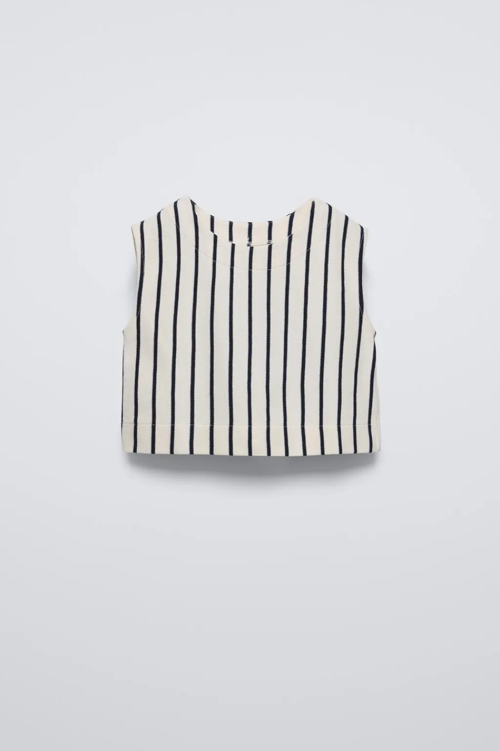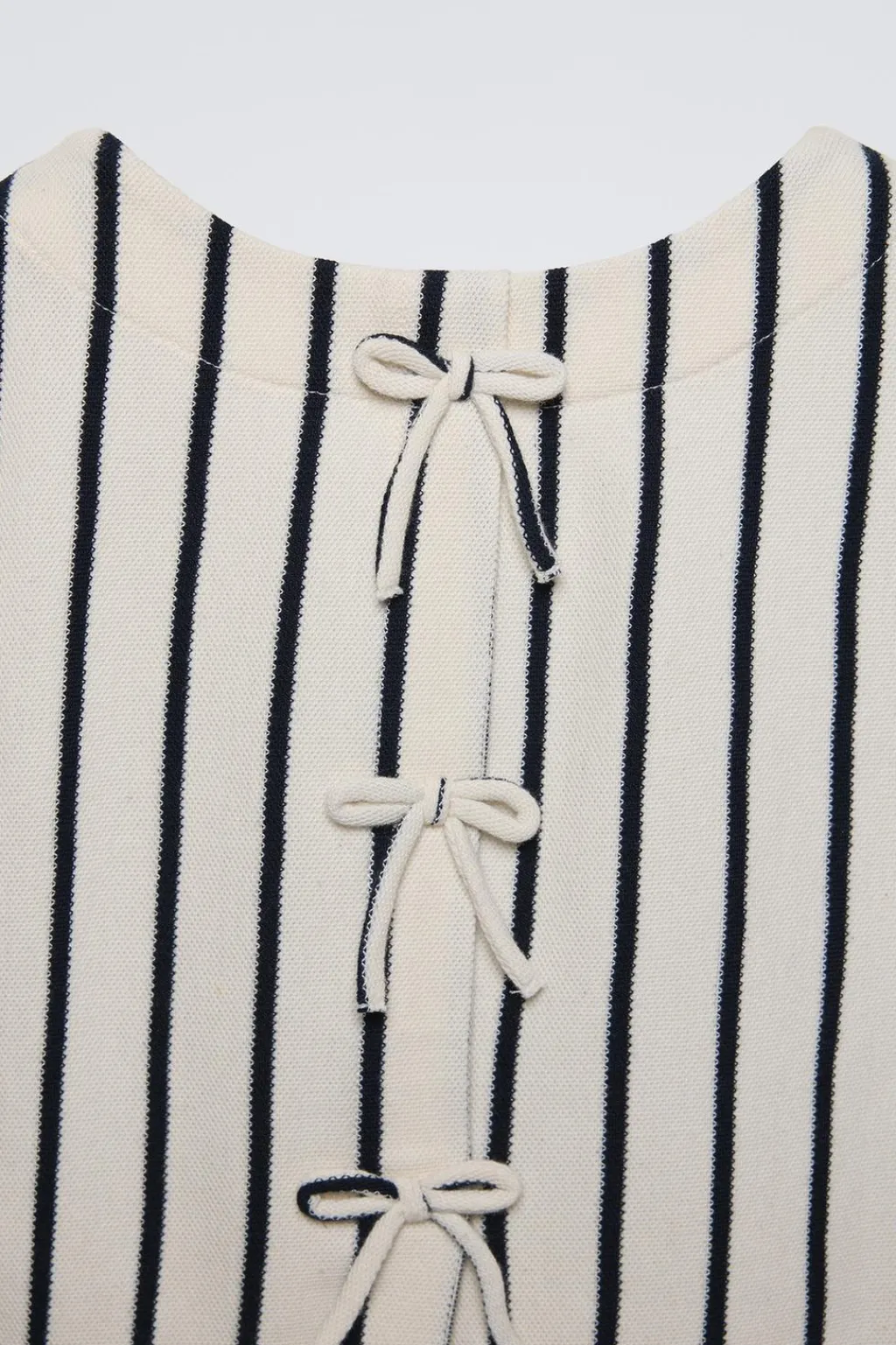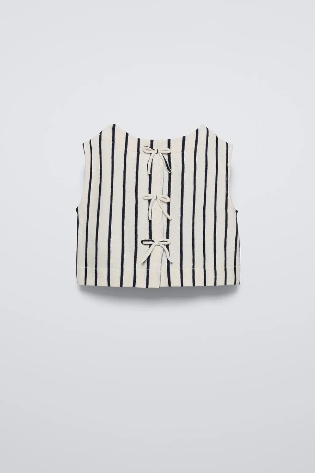 Top con cuello redondo y manga sisa. Detalle abertura y aplique lazos en espalda.