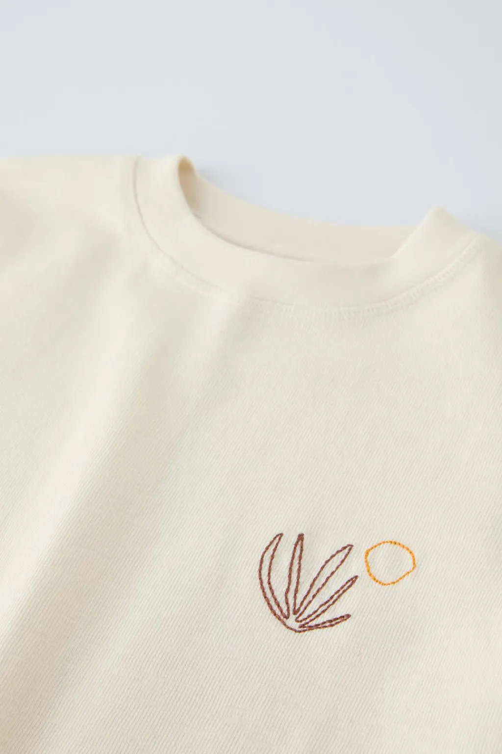 Camiseta con cuello redondo y manga corta. Motivo alga bordada en pechera.