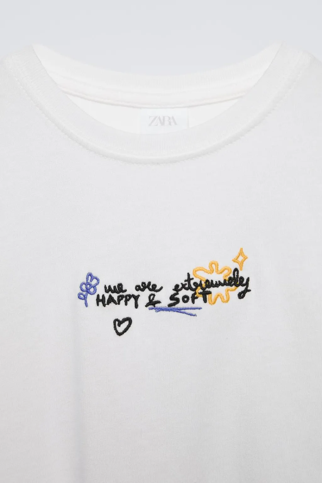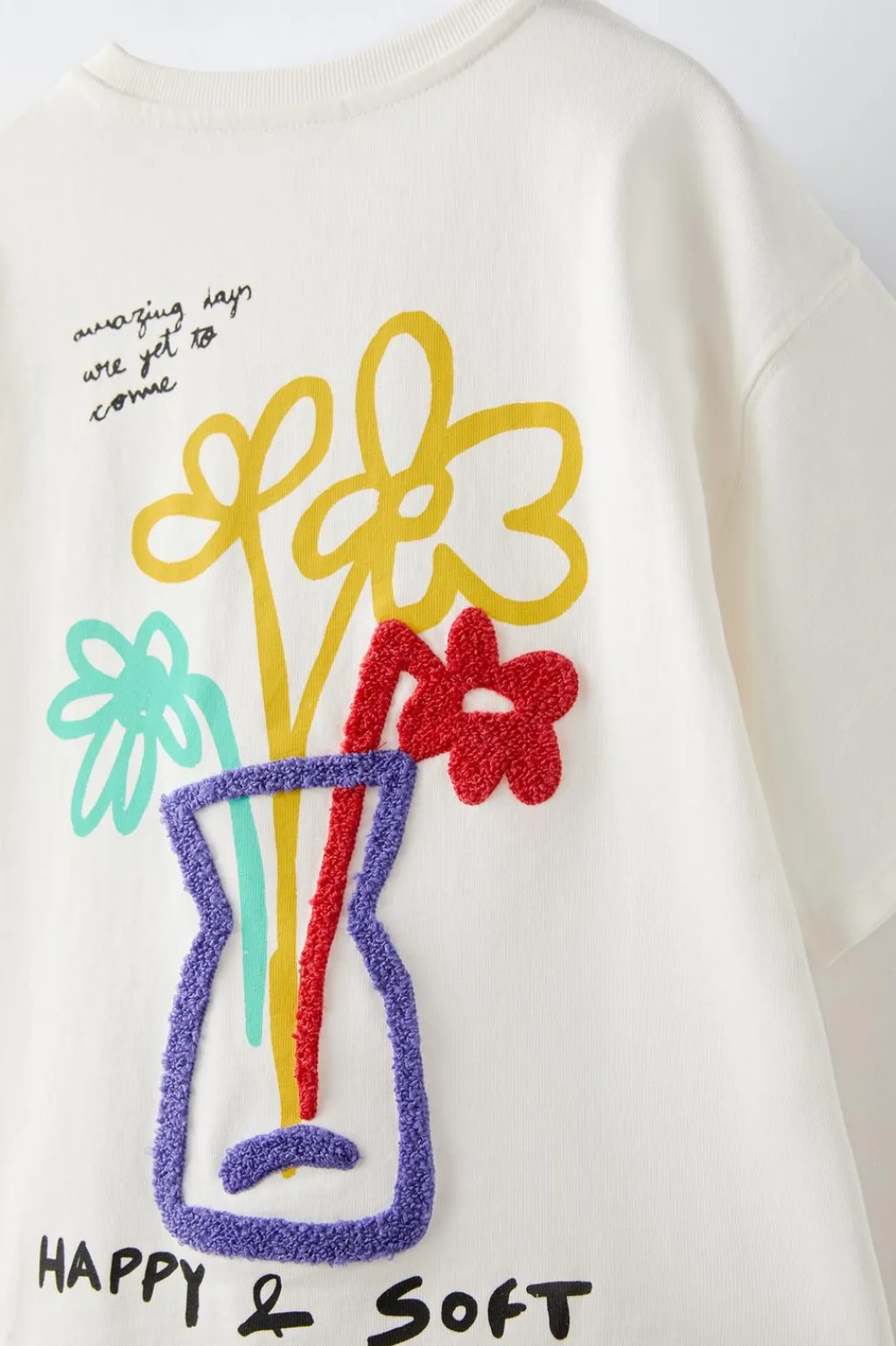 Camiseta con cuello redondo y manga corta. Estampado en delantero con detalle bordado rizo.