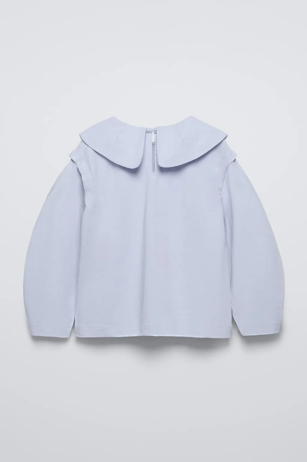 Camiseta con cuello bobo y manga larga. Cierre tipo lágrima con botón en espalda.