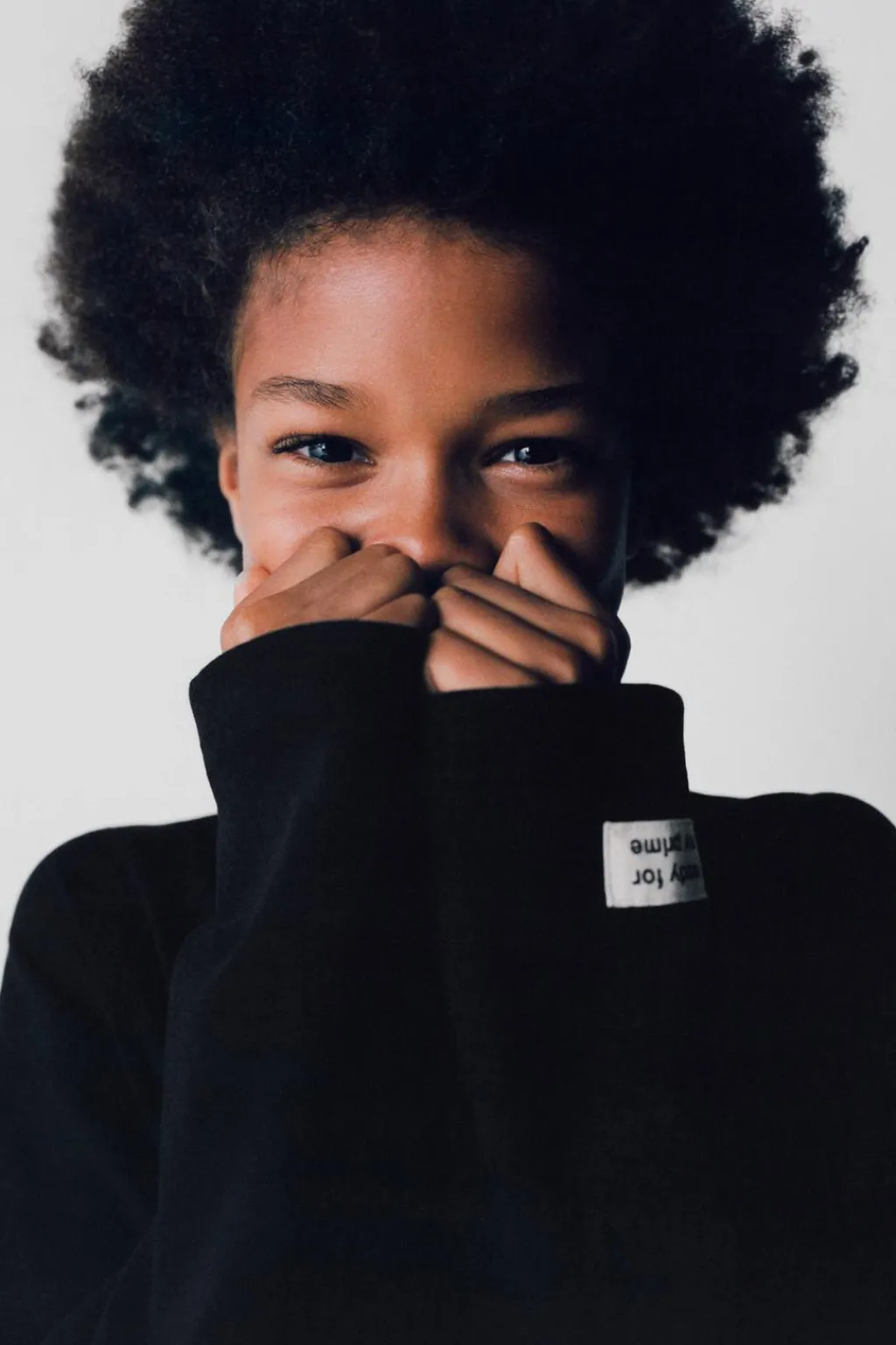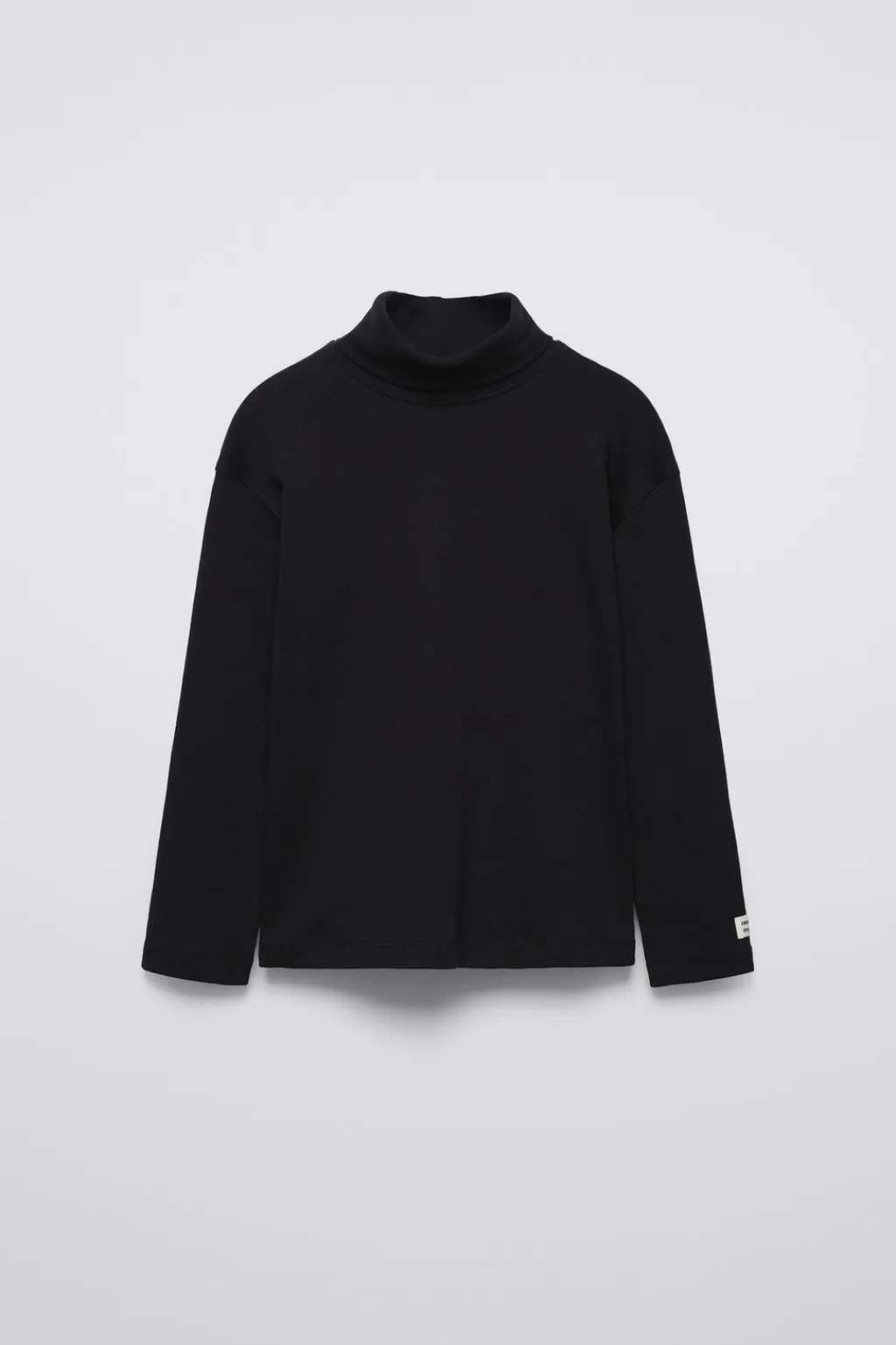 Camiseta con cuello vuelto y manga larga. Aplique etiqueta en manga.