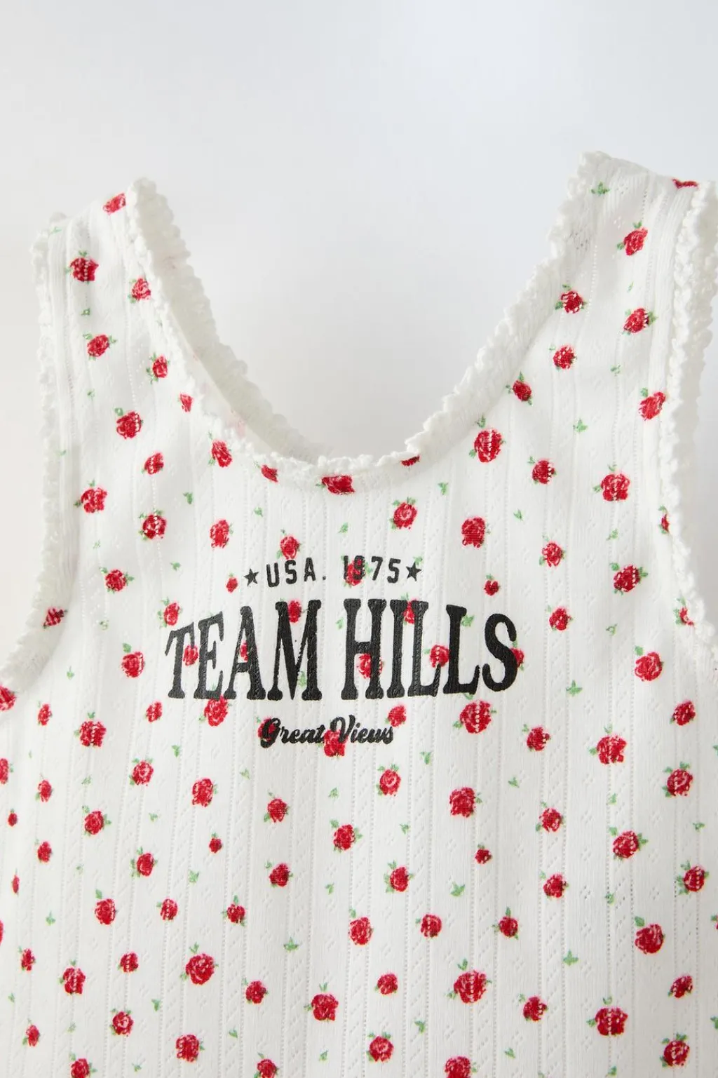 Camiseta con cuello redondo y manga sisa. Estampado texto en delantero.