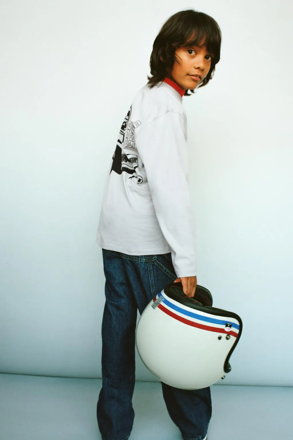 Camiseta con cuello redondo y manga larga. Estampado FORD © en pechera y espalda. Aplique etiqueta en bajo.