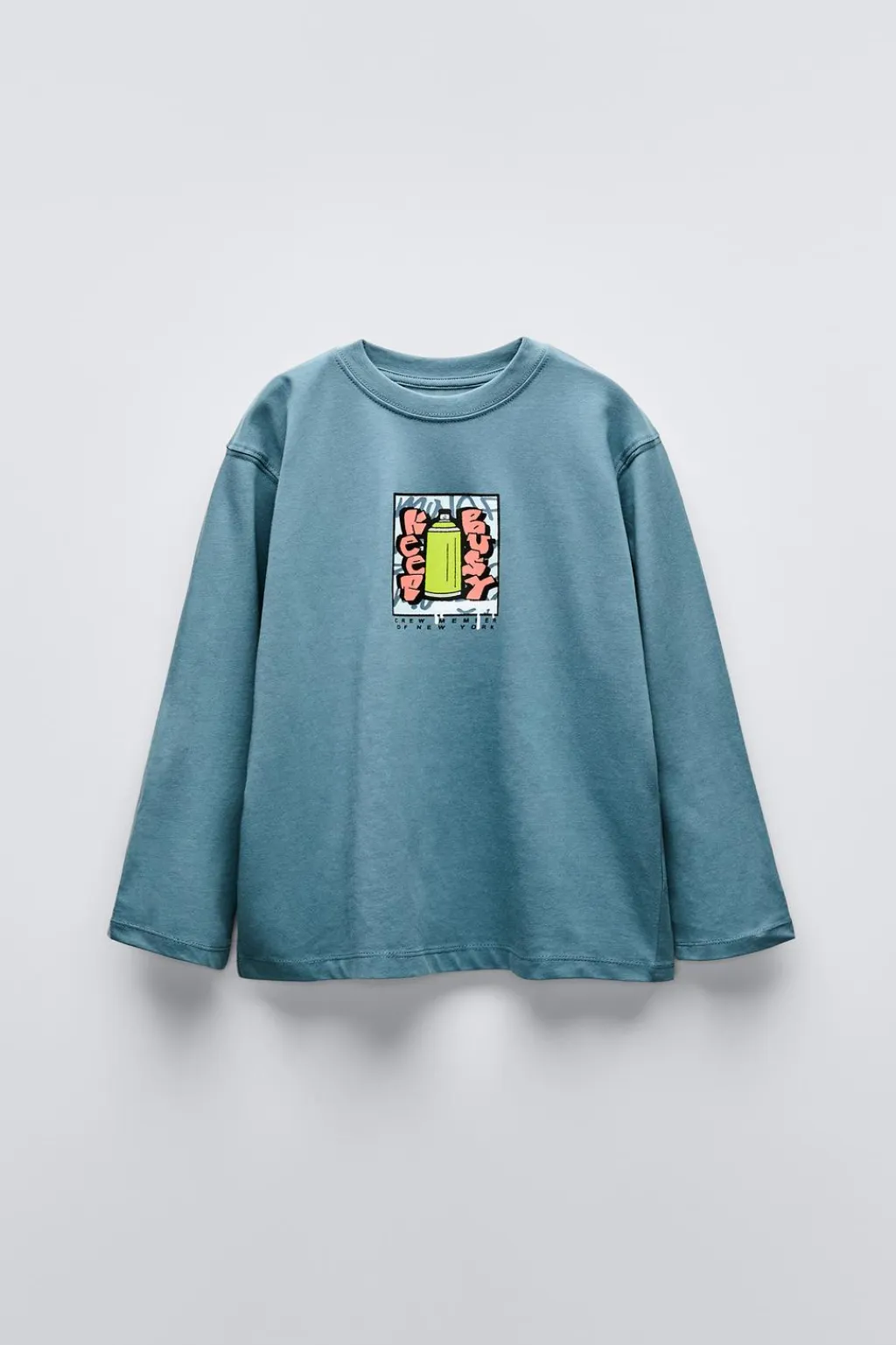 Camiseta con cuello redondo y manga larga. Estampado graffiti en delantero y espalda.