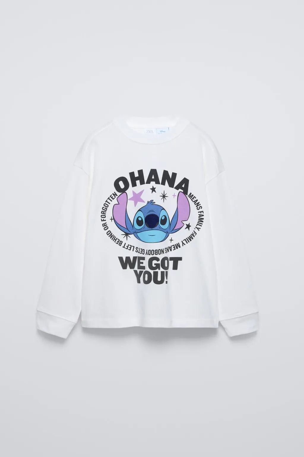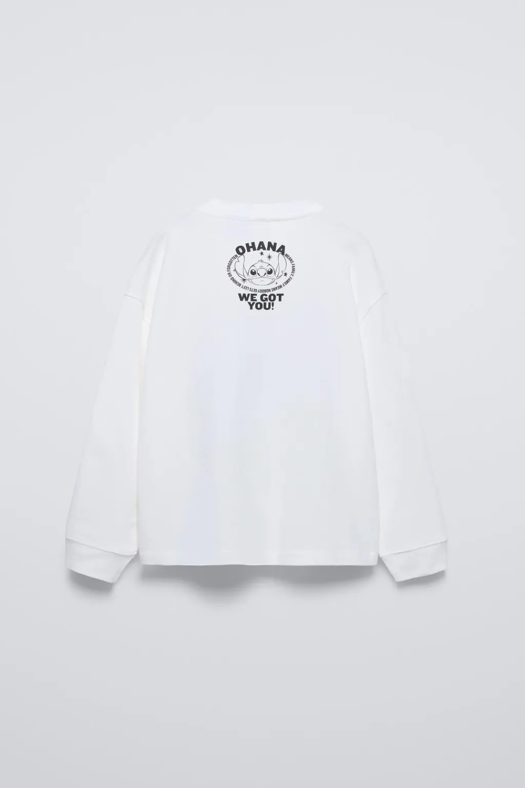 Camiseta con cuello redondo y manga larga acabada en puño. Estampado LILO & STITCH © DISNEY en delantero y espalda.