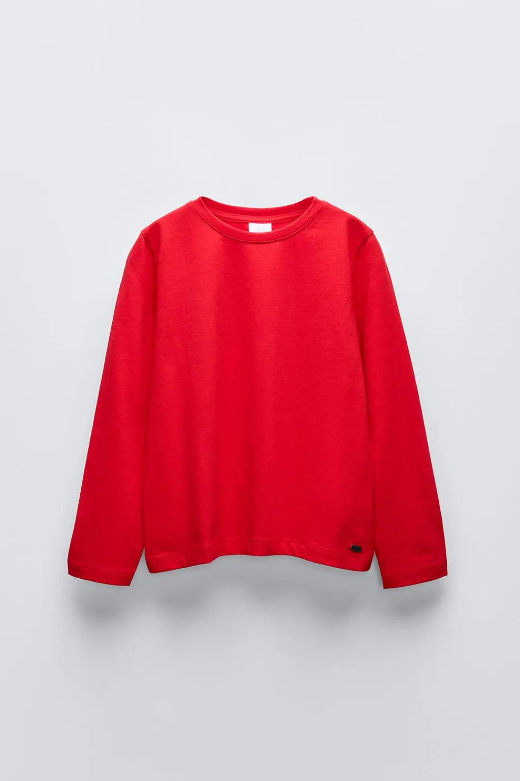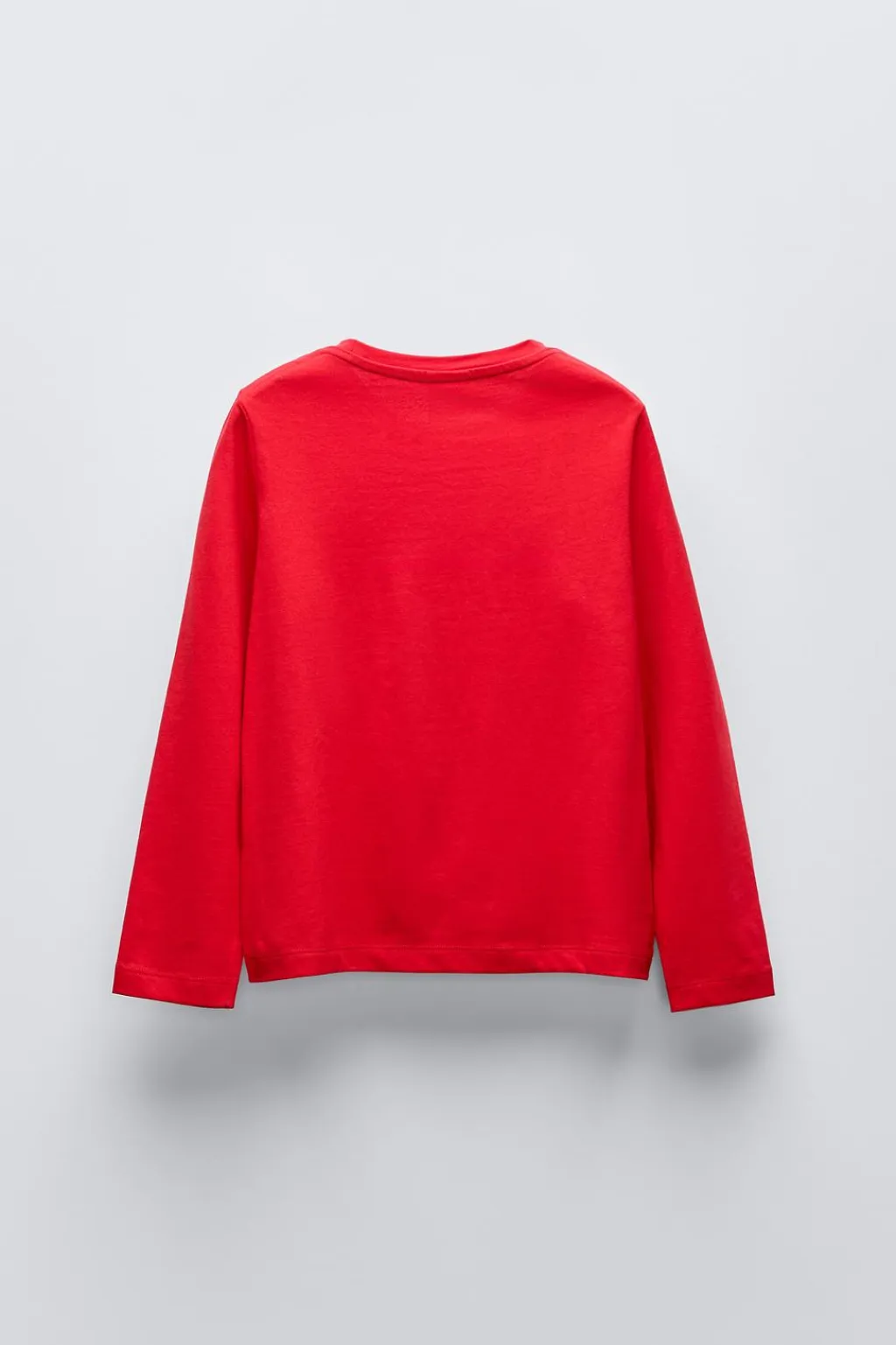 Camiseta con cuello redondo y manga larga. Aplique en bajo.