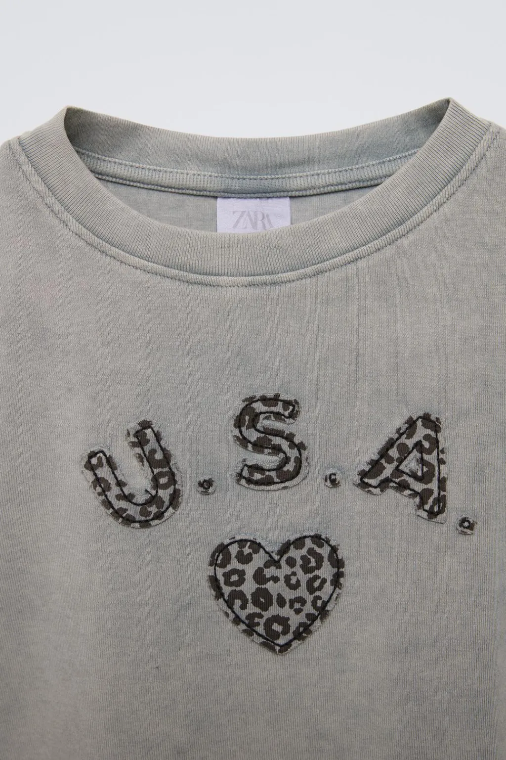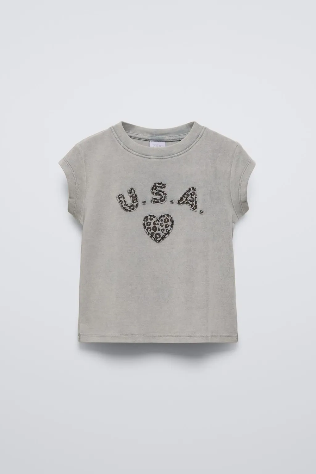 Camiseta con cuello redondo y manga corta. Detalle parche en delantero con estampado animal print.