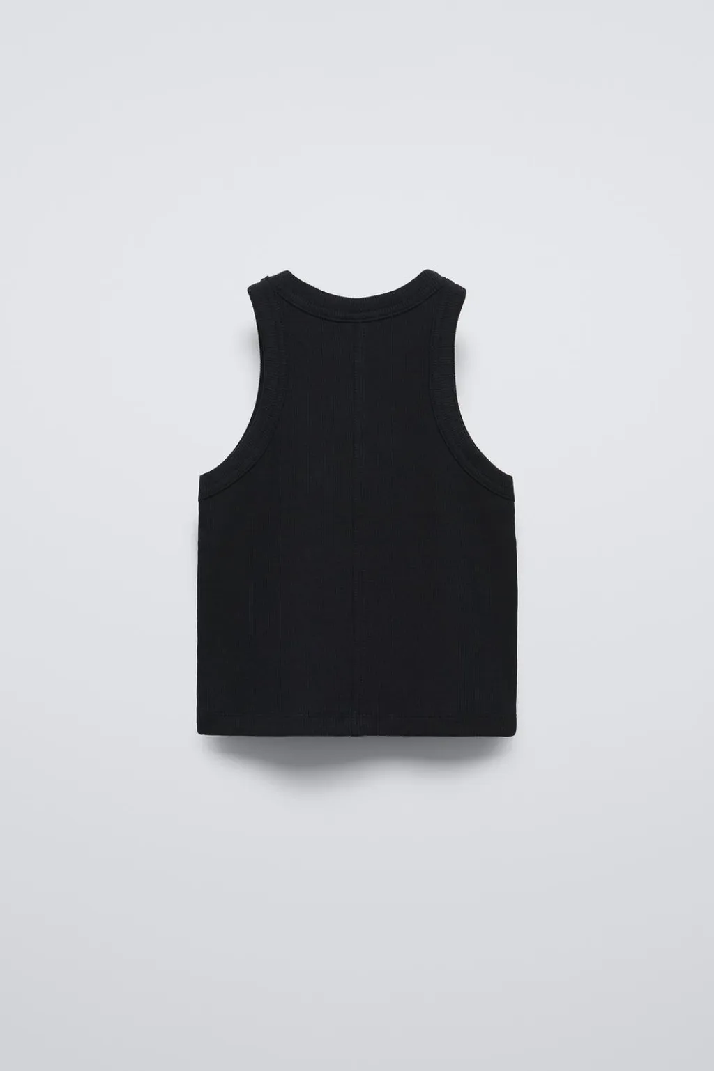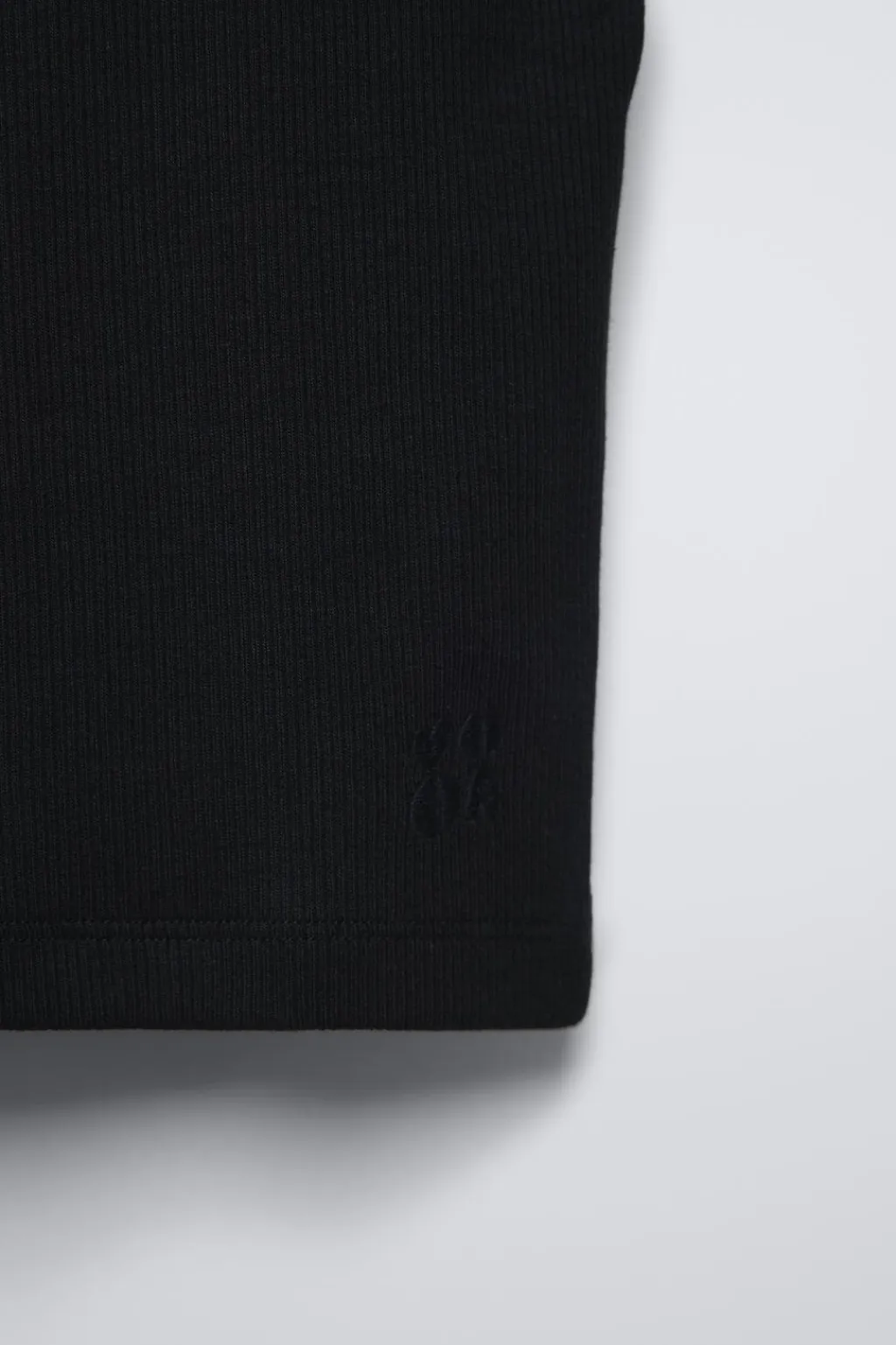 Camiseta rib con cuello redondo y manga sisa. Detalle bordado en bajo.