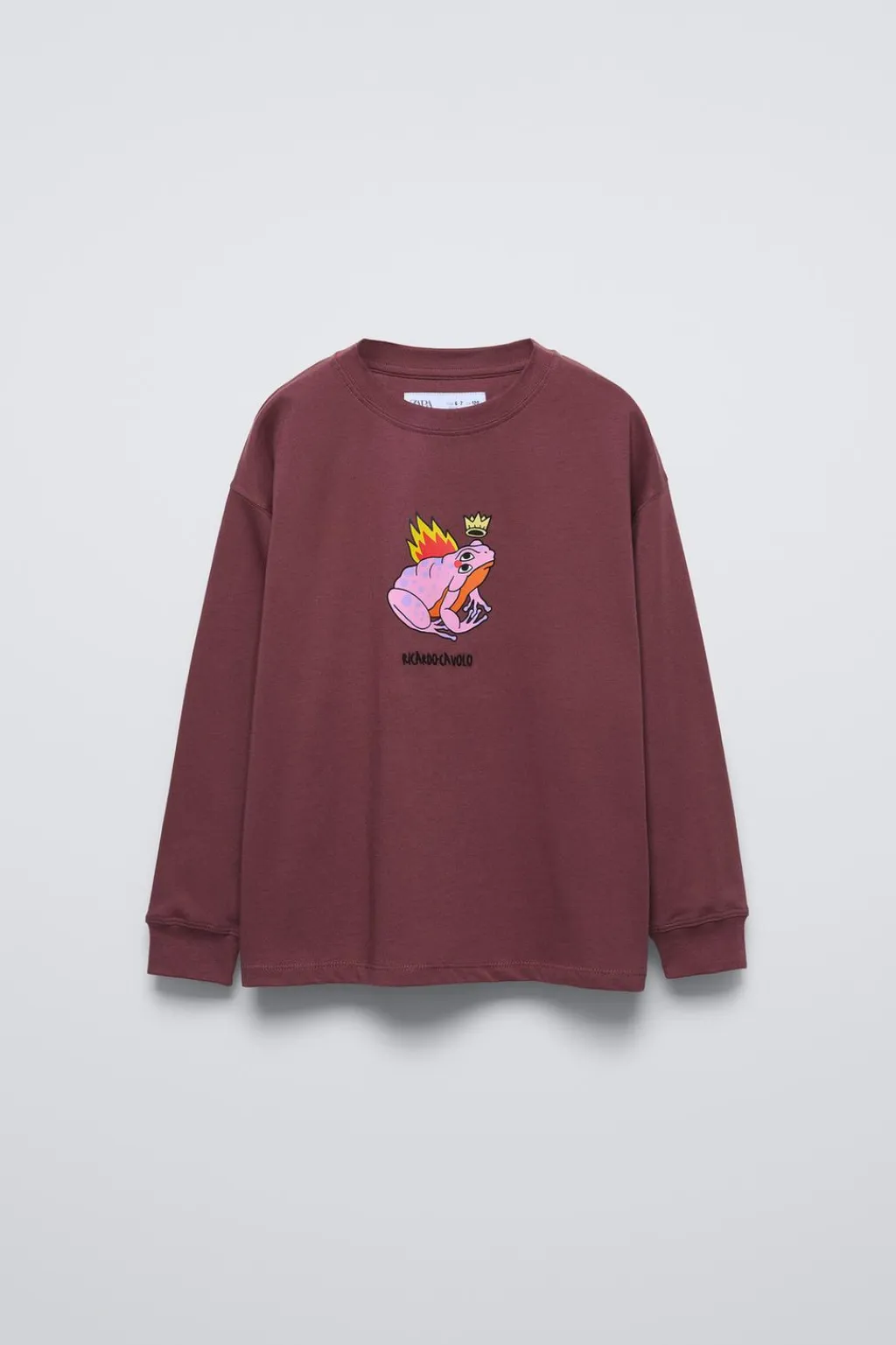 Camiseta con cuello redondo y manga larga acabada en puño. Estampado rana en delantero y detalle bordado RICARDO-CAVOLO. Aplique etiqueta en espalda.