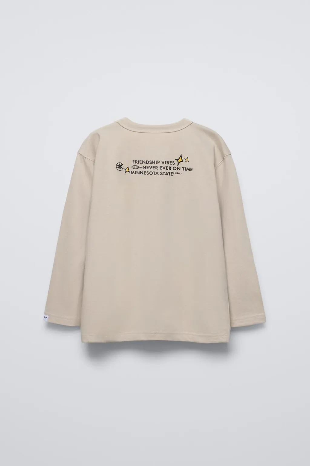 Camiseta con cuello redondo y manga larga. Estampado en delantero y texto relieve en espalda.