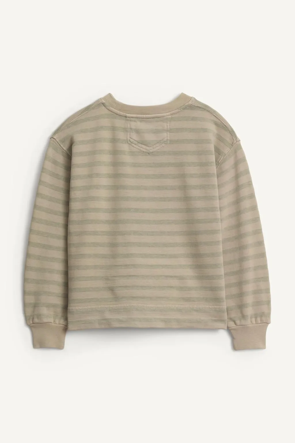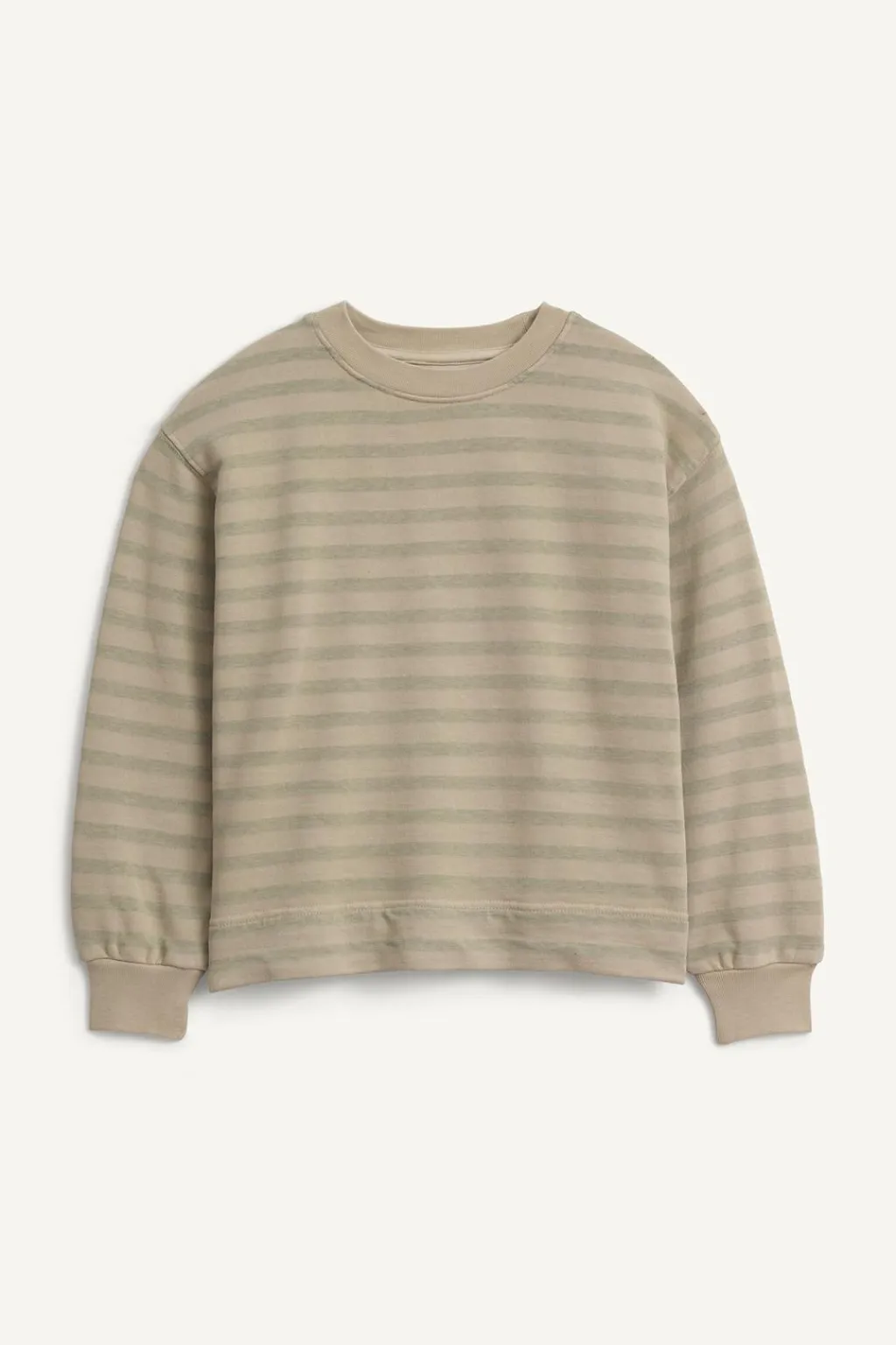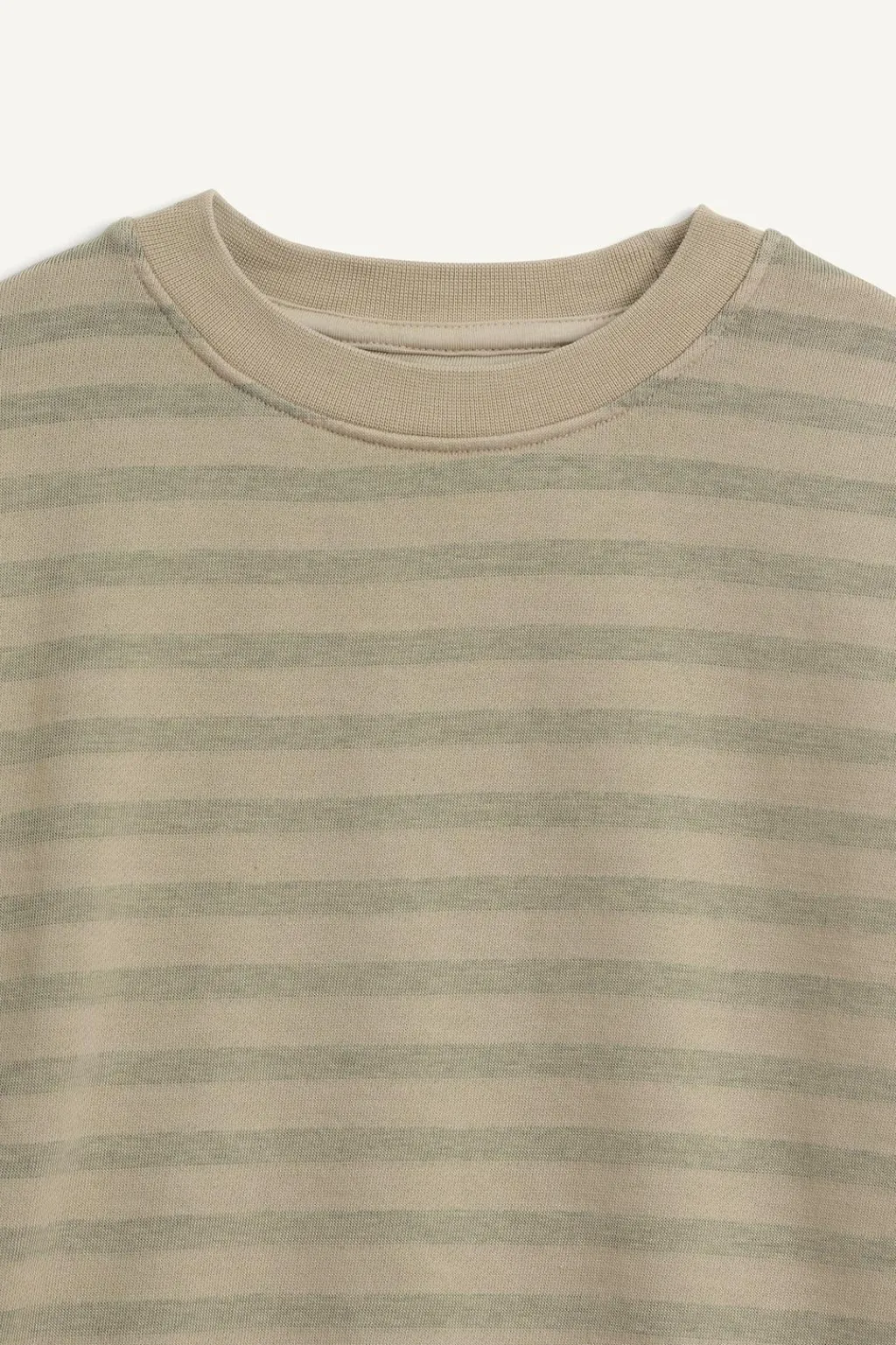 Camiseta de algodón, con cuello redondo en rib y manga larga acabada en puño. Detalle aberturas laterales en bajo. Estampado de rayas.