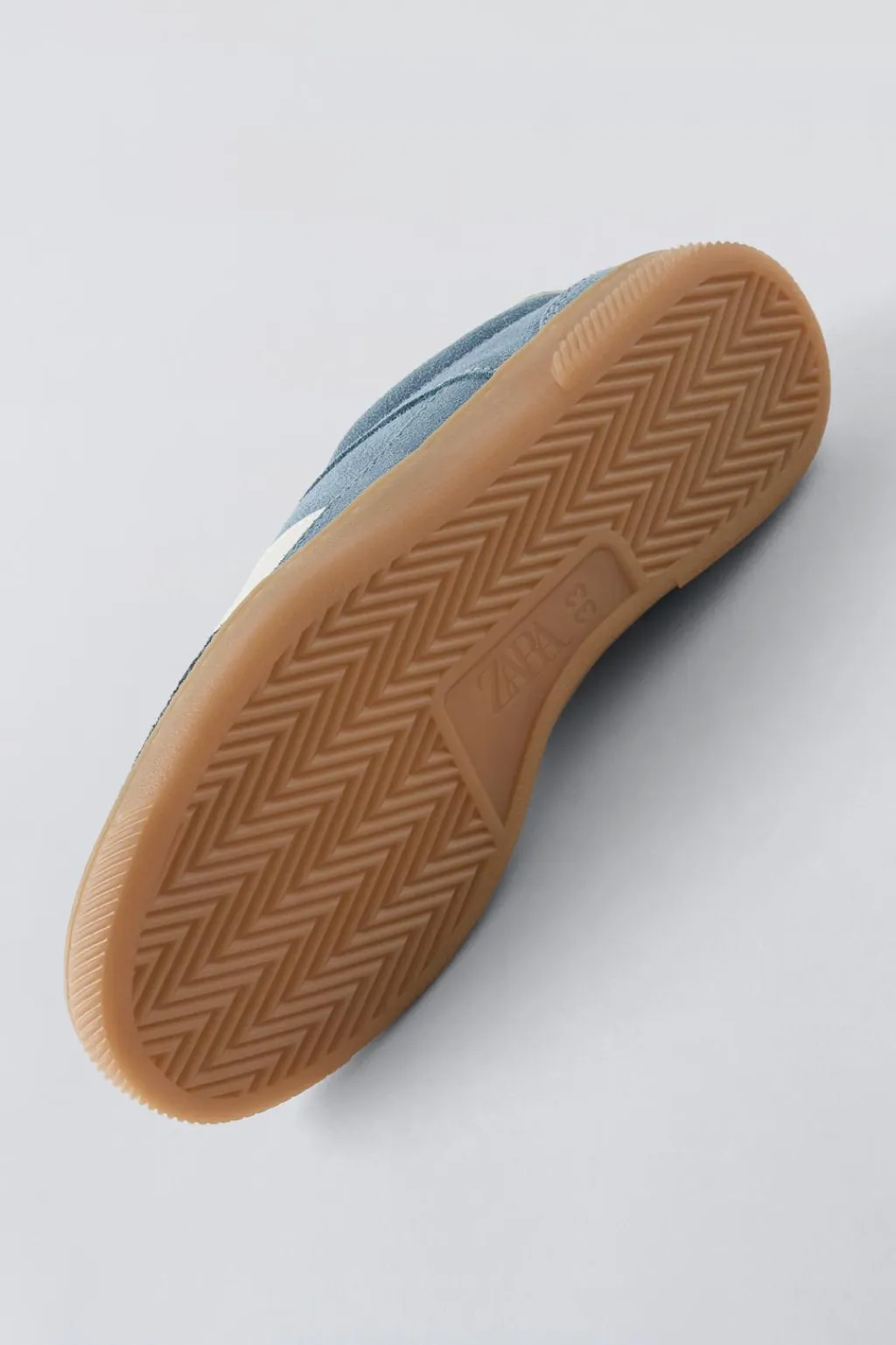 Zapatilla tipo bamba de piel vacuno acabado en serraje. Cierre mediante cordones ajustables. Plantilla flexible. Suela de goma en contraste de color.
