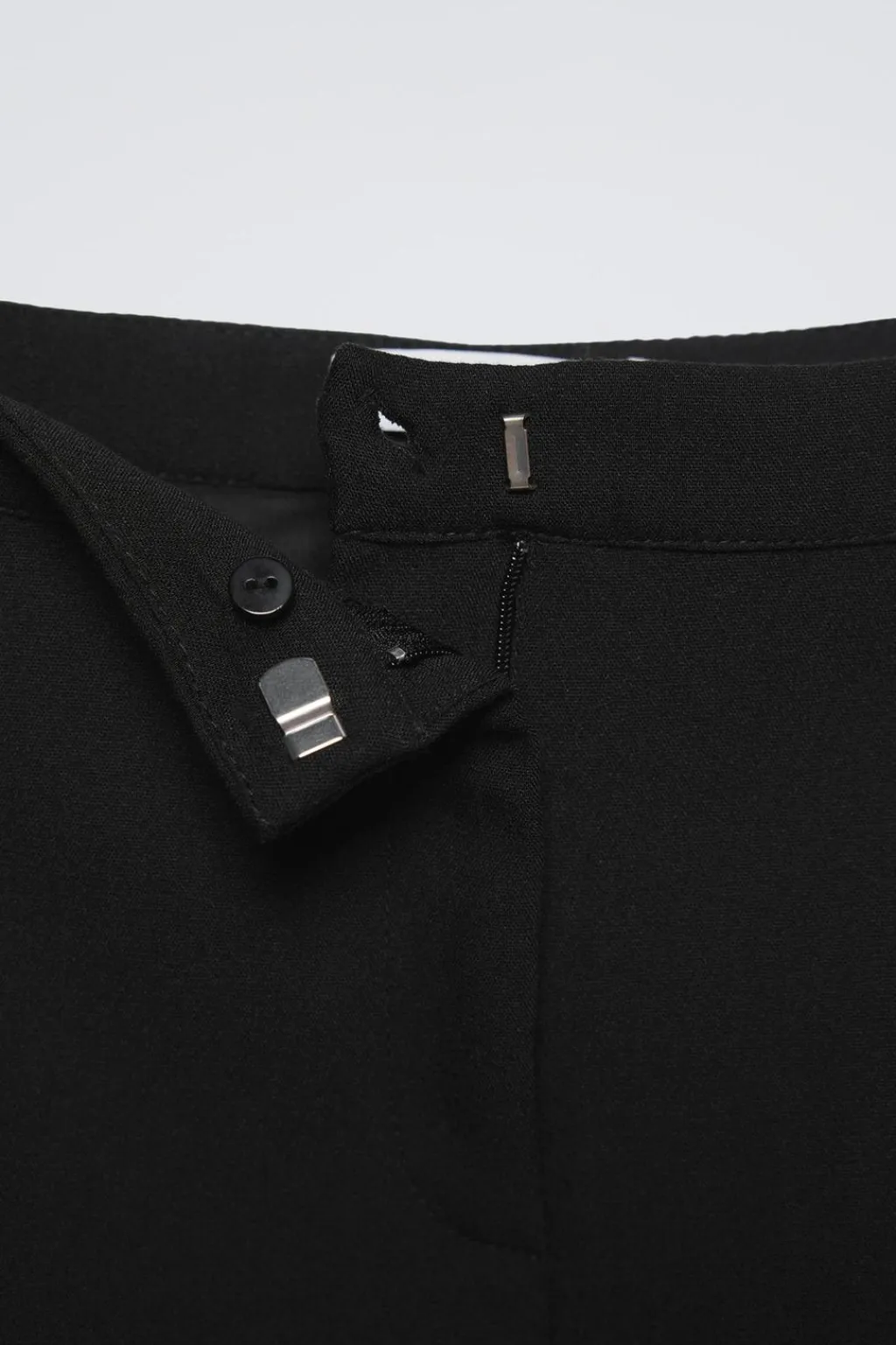 Falda con cinturilla interior ajustable y cierre metálico frontal. Bolsillos laterales ocultos por costura. Banda lateral con tejido satinado.