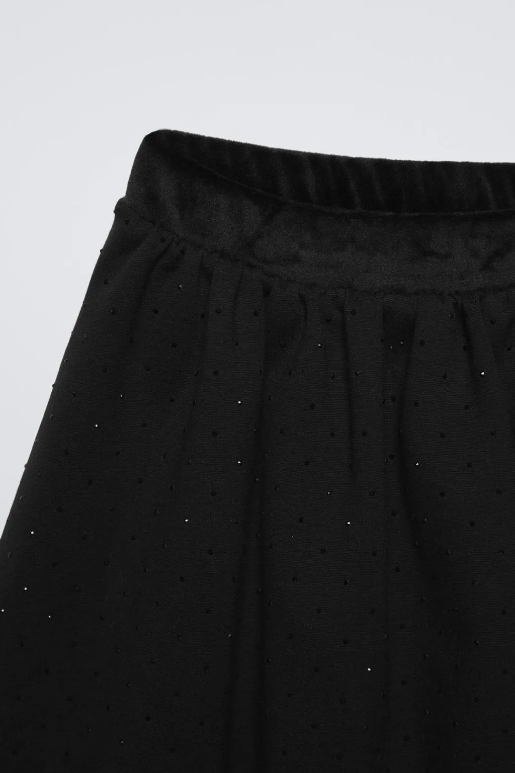 Falda con cinturilla elástica. Aplique brillos. Bajo acabado en globo.
