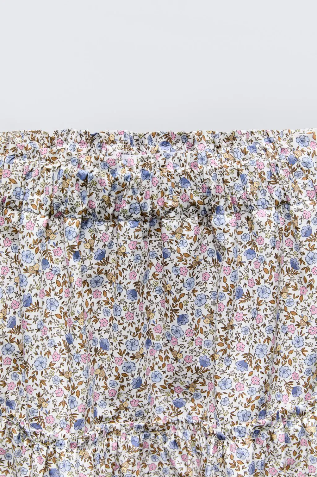 Falda midi con cinturilla elástica. Detalle paneles. Estampado flores.