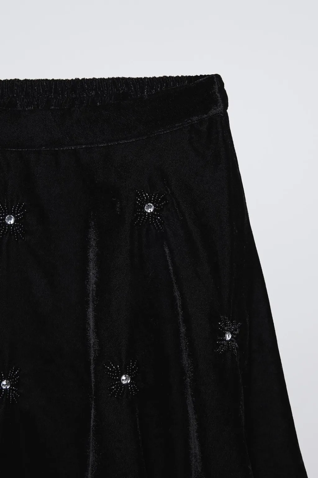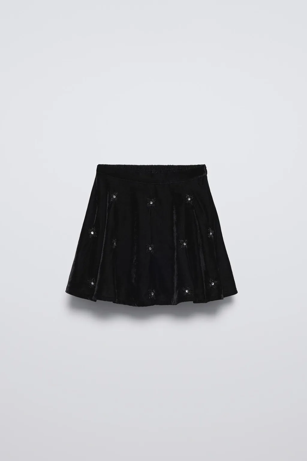 Falda con cinturilla elástica en espalda. Aplique abalorios en forma de flor.