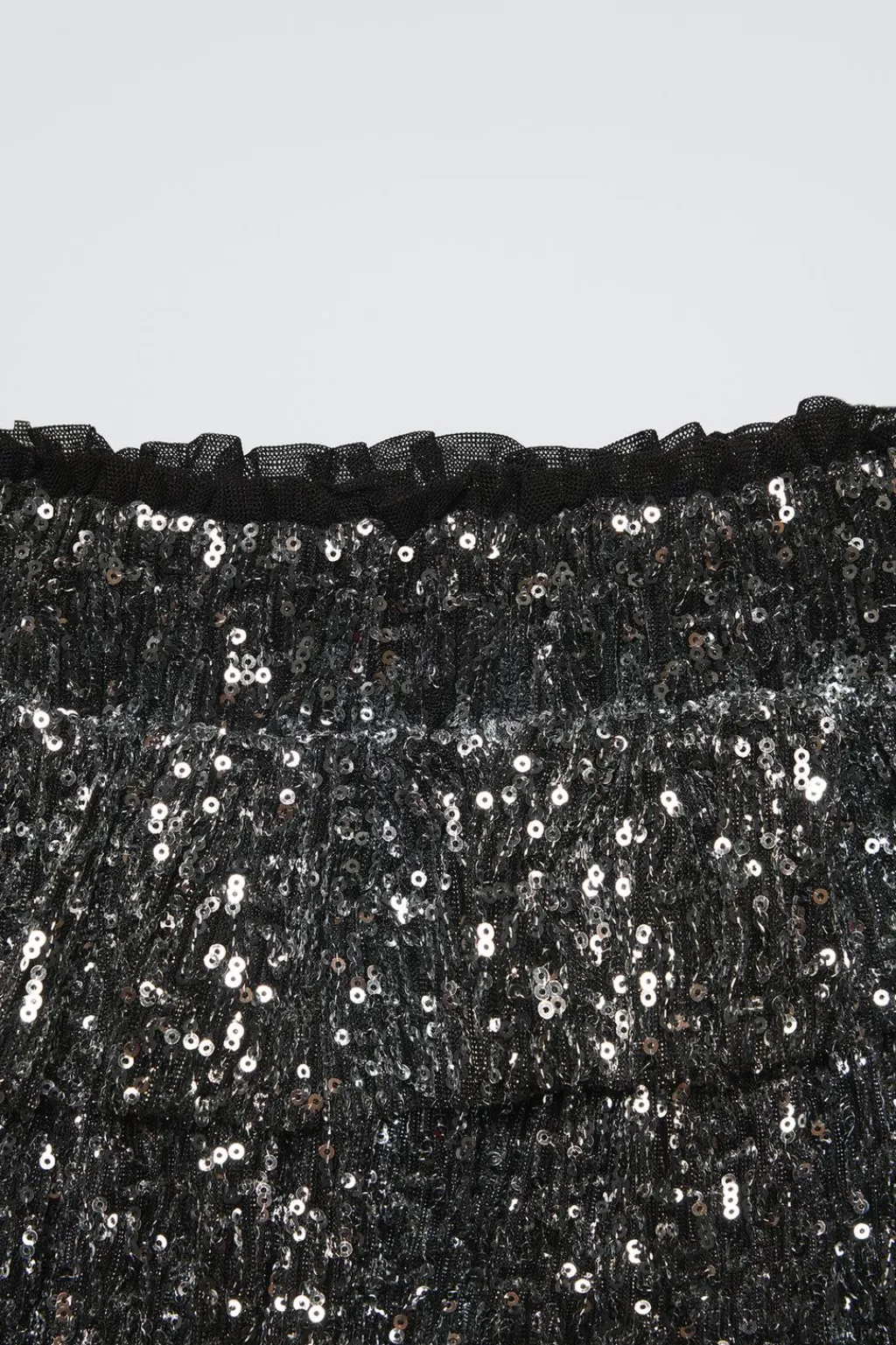 Falda con cinturilla elástica. Detalle volantes y aplique lentejuelas.