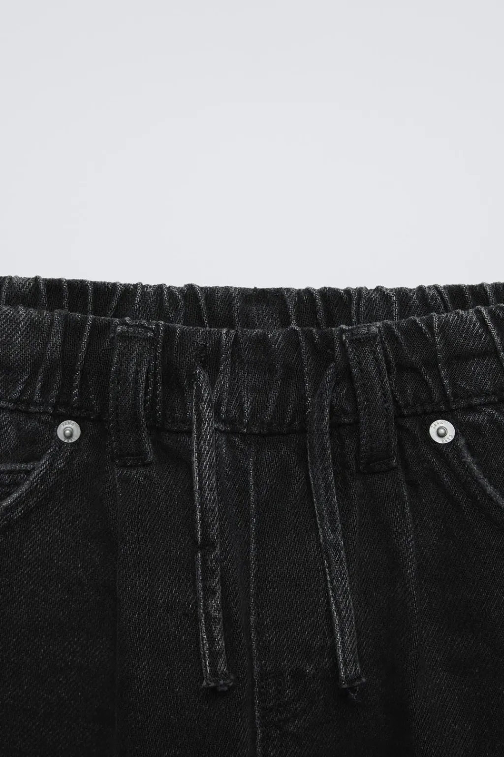 Jeans con cinturilla elástica y cordones ajustables frontal. Bolsillos delanteros y de tipo plastrón en espalda.