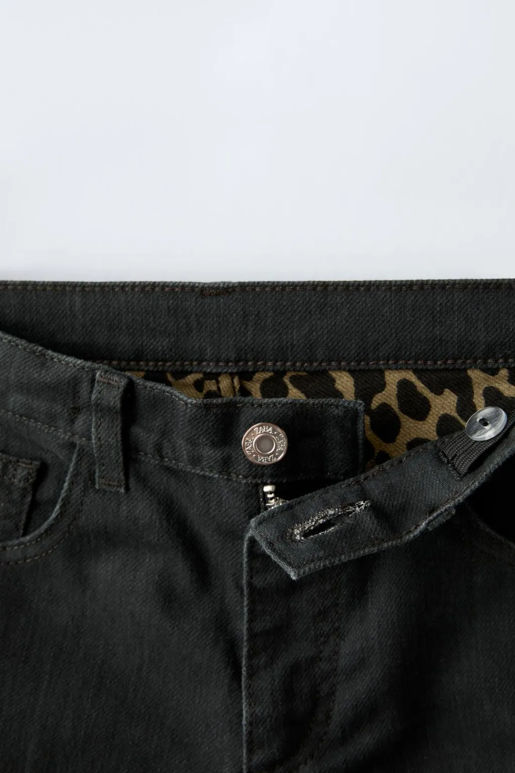 Jeans straight fit con cinturilla interior ajustable y cierre con botón frontal. Bolsillos en delantero y tipo plastrón en espalda. Bajo acabado en vuelta y estampado animal print.