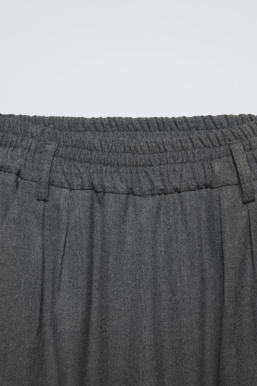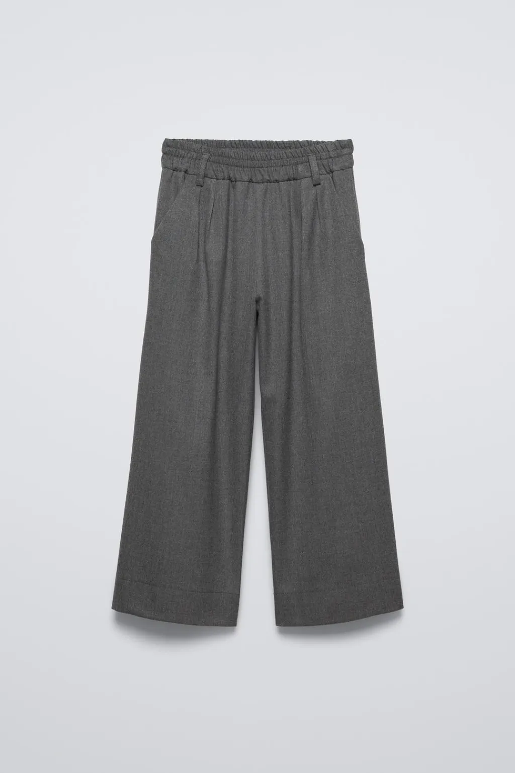 Pantalón fluido con cinturilla elástica y bolsillos en delantero. Detalle pinzas frontal.