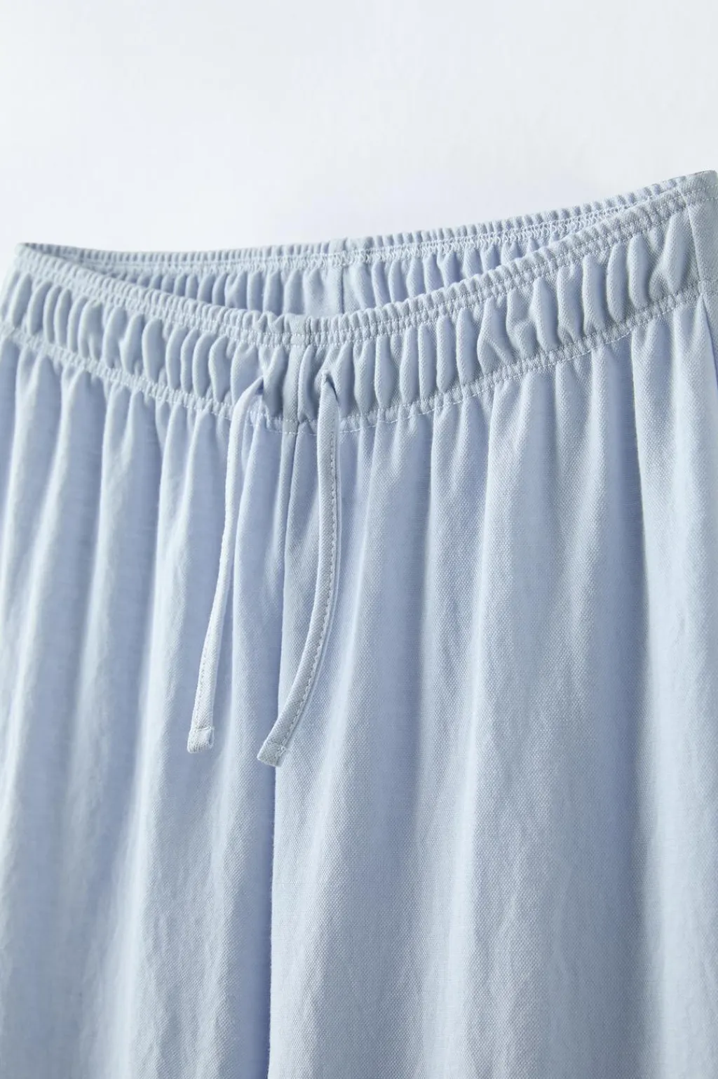 Pantalón con cinturilla elástica y aplique cordón frontal.